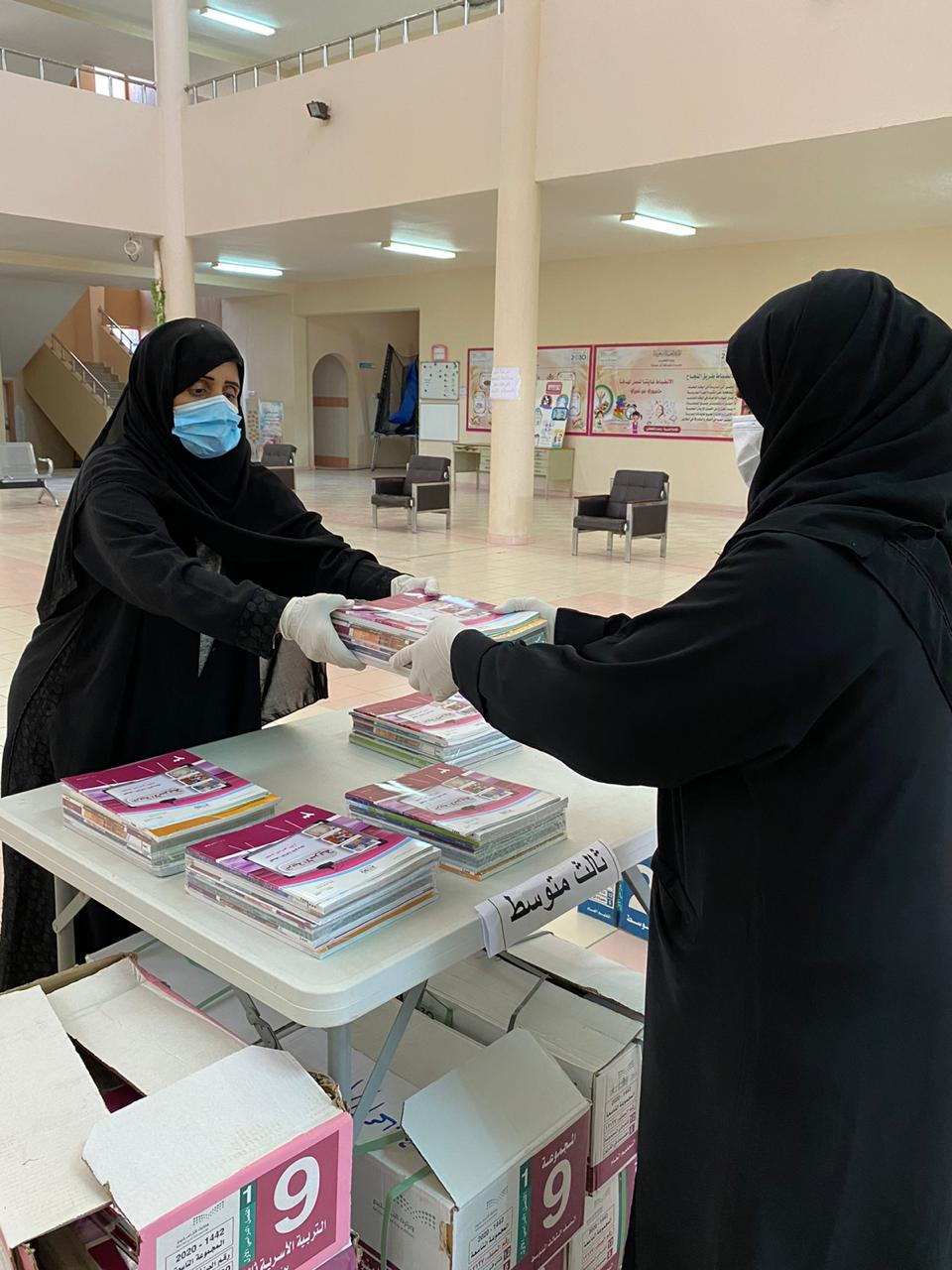 وأشار الى انه يتم إبلاغ أولياء الأمور والطلاب بالمواعيد عبر الرسائل النصية ومنصات التواصل الاجتماعي الخاصة بالمدرسة لاستلام الكتب حسب الموعد.