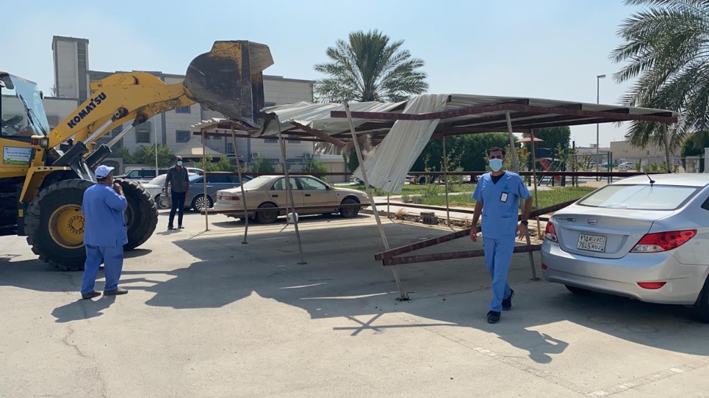 بالصور.. إزالة مظلات السيارات المخالفة بالقطيف