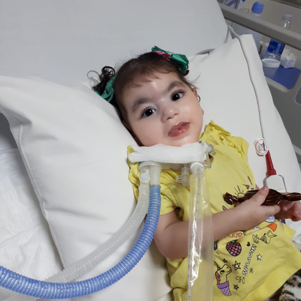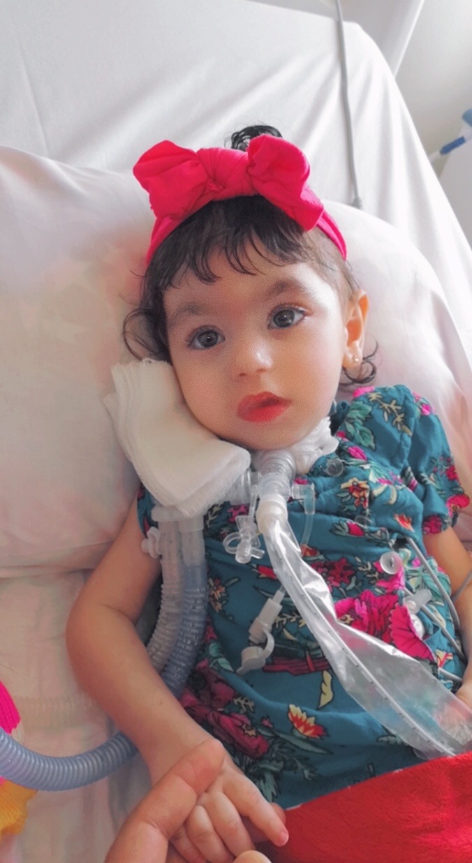 - الطفلة تعاني من مرض ضمور العضلات وتتنفس عبر أنبوب.