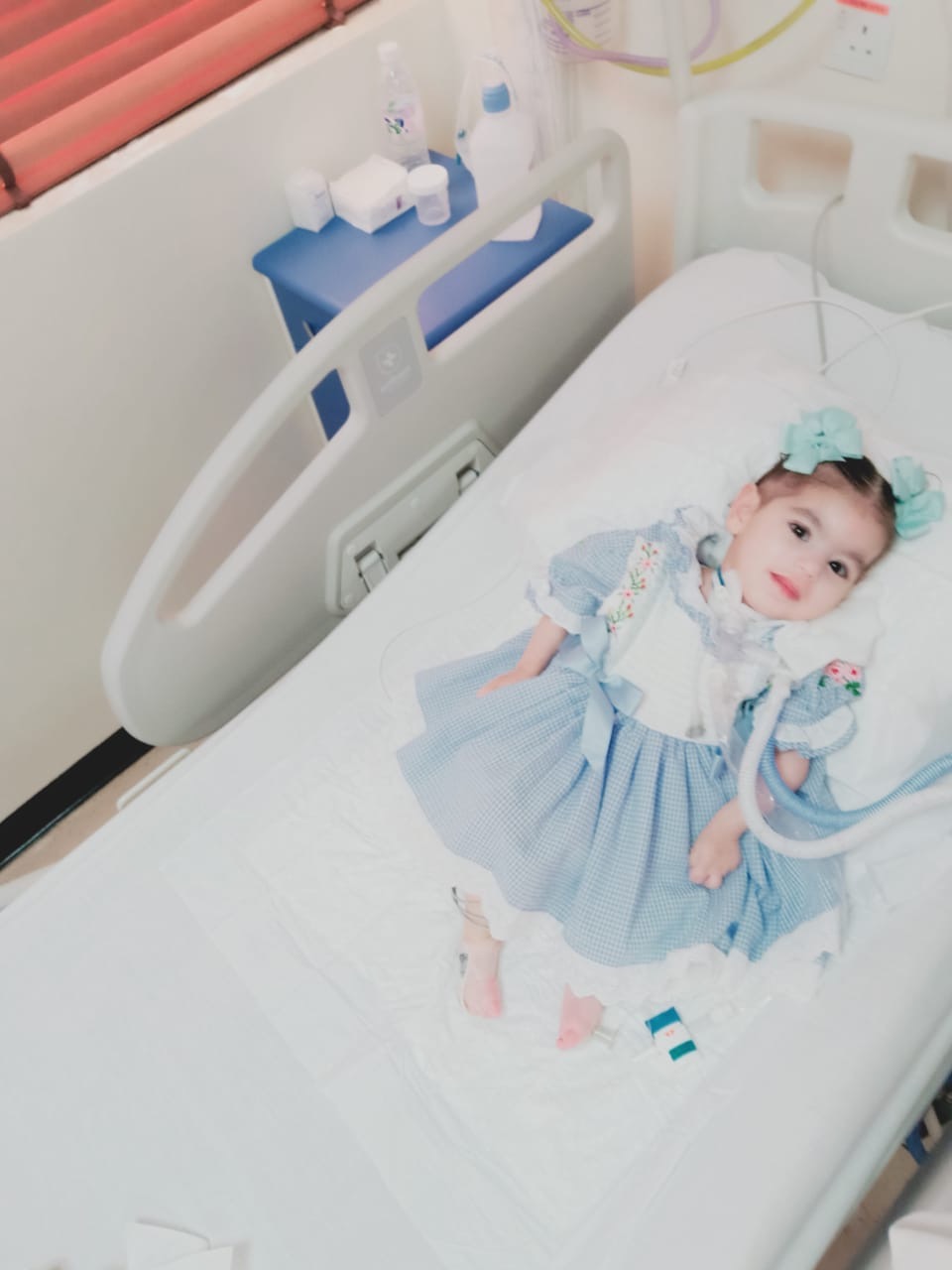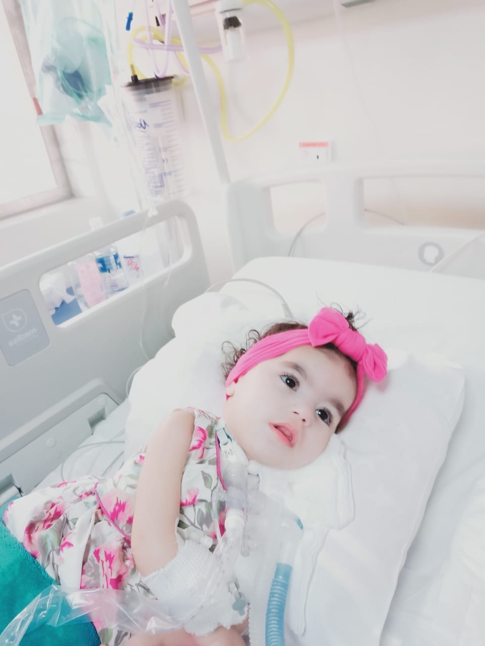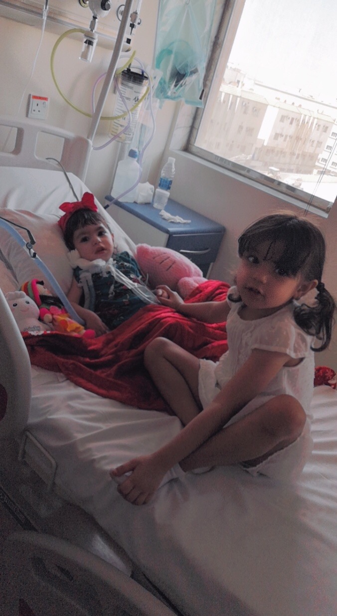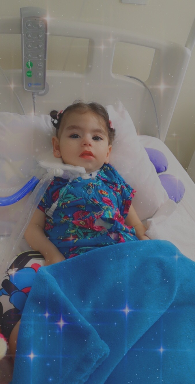 الطفلة ”كيان“ التي تتنفس من خلال الأنبوب ترقد منذ خمسة شهور في مستشفى جاما بالدمام وكانت قبلها في مستشفى القطيف المركزي لخمسة شهور أخرى.