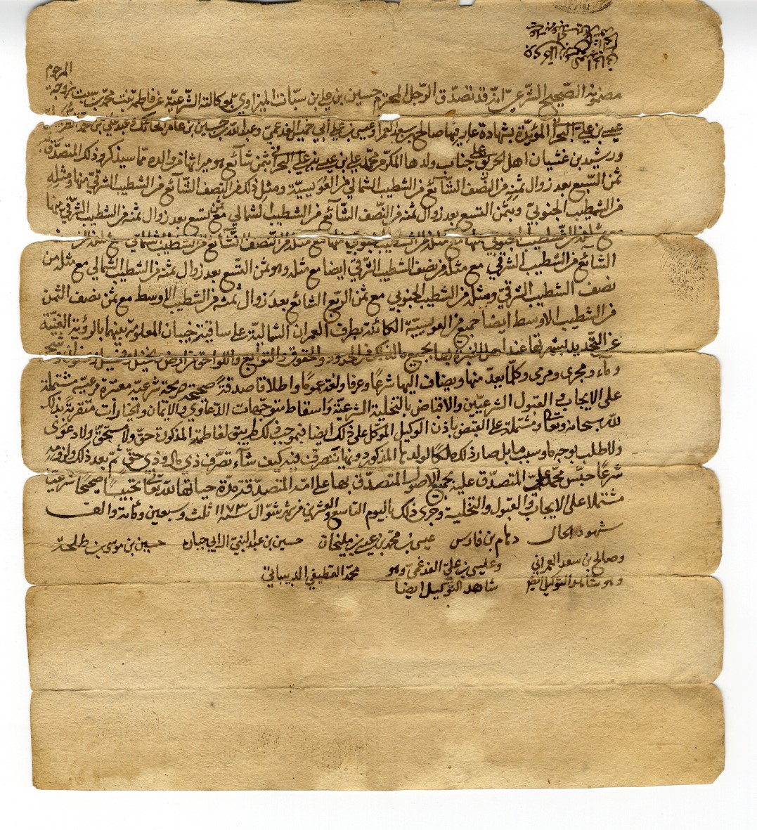 شعيب بن نصر الله بن عيد المزاوي، حسين بن علي بن سبات بن جمعه، محمد بن حسين بن مربط المزاويين، والمبايعة لبستان بطرف الحليلة، ومن شهود المبايعة محمد علي بن عيسى بن علي البحراني، وقد كان البيع في 8 رجب سنة 1173 هـ .