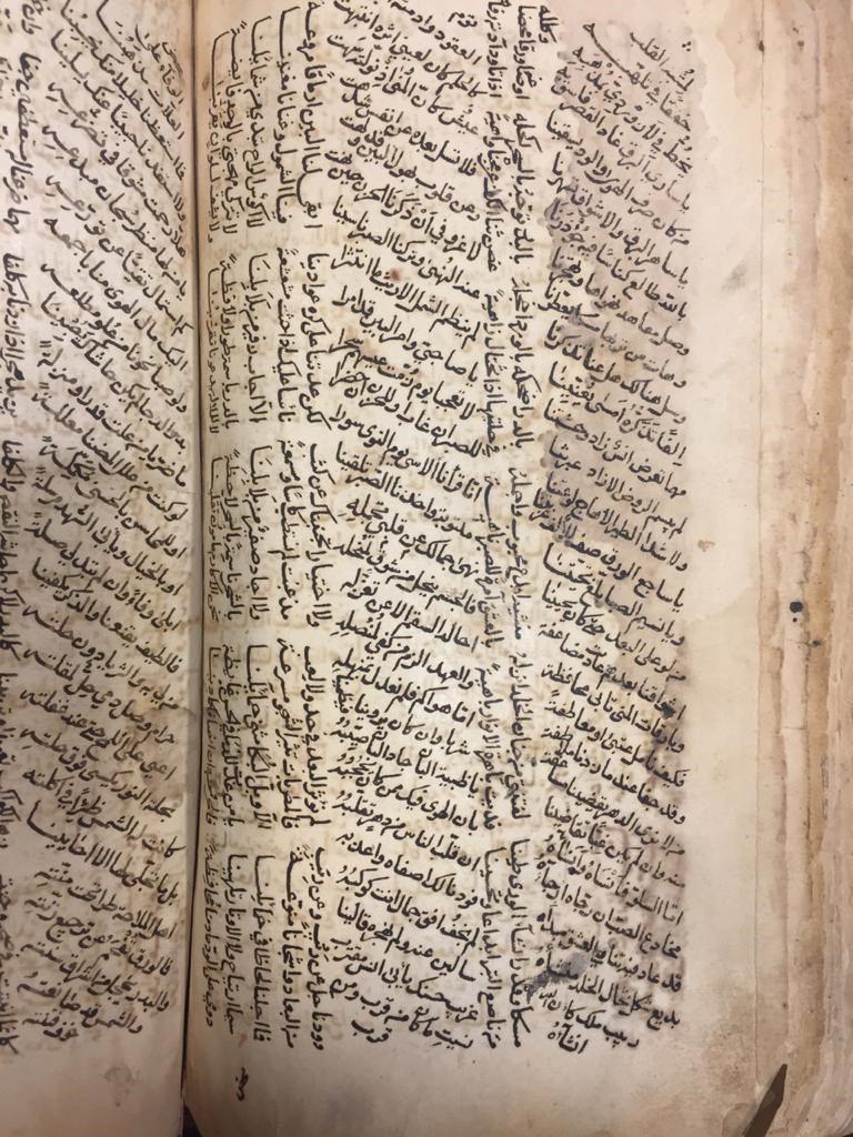وهي ناقصة الأول والآخر، في بعض صفحات المخطوط تلف، وخرم.