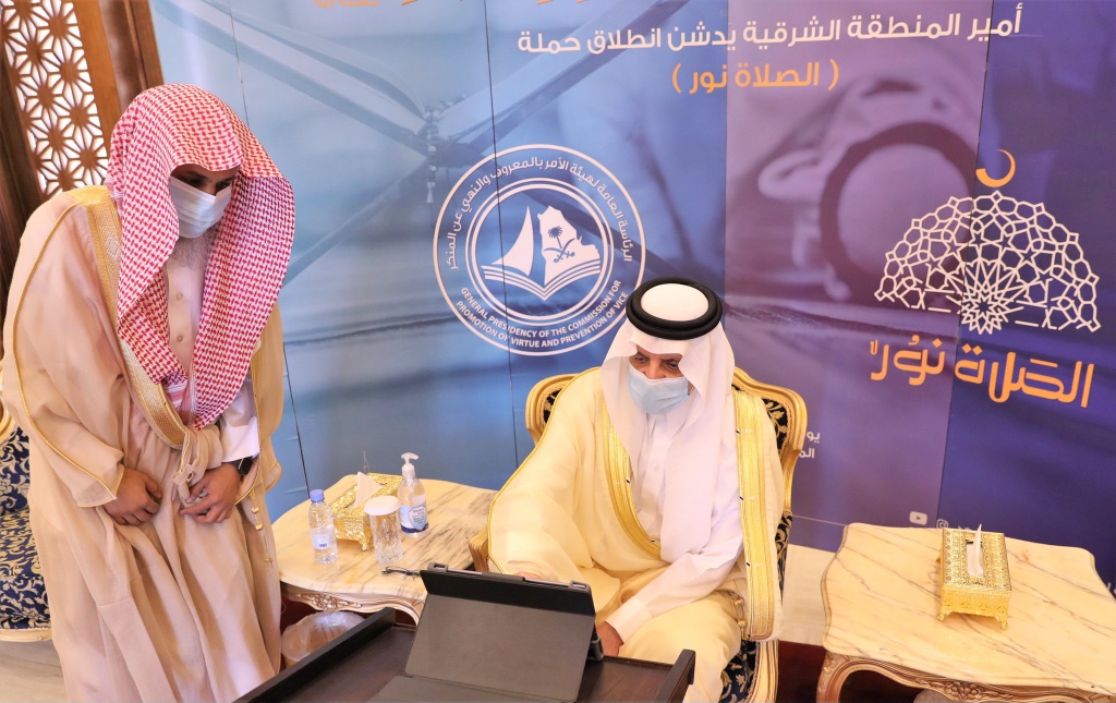 دشن أمير المنطقة الشرقية سعود بن نايف بن عبدالعزيز، بديوان الإمارة اليوم ”الأحد“ حملة رئاسة الأمر بالمعروف والنهي عن المنكر ”الصلاة نور“ في المنطقة الشرقية، والتي تنظمها الرئاسة لبيان مكانة الصلاة وفضائلها، وأثرها على حياة الفرد.
