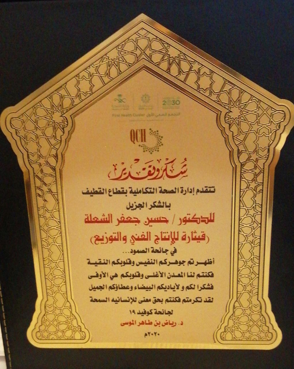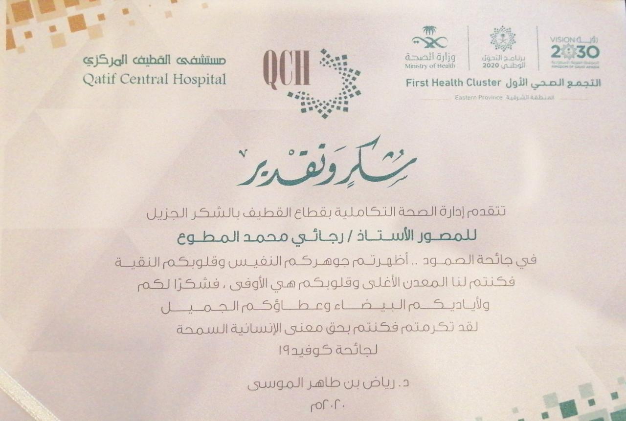 كرمت رئيسة الرعاية الصحية النموذجية بقطاع القطيف الدكتورةلمياء عبد الوهاب بو حليقه 12 شخصية من مبدعي وإعلاميي ومصوري المنطقة نظير تعاونهم خلال جائحة كورونا.