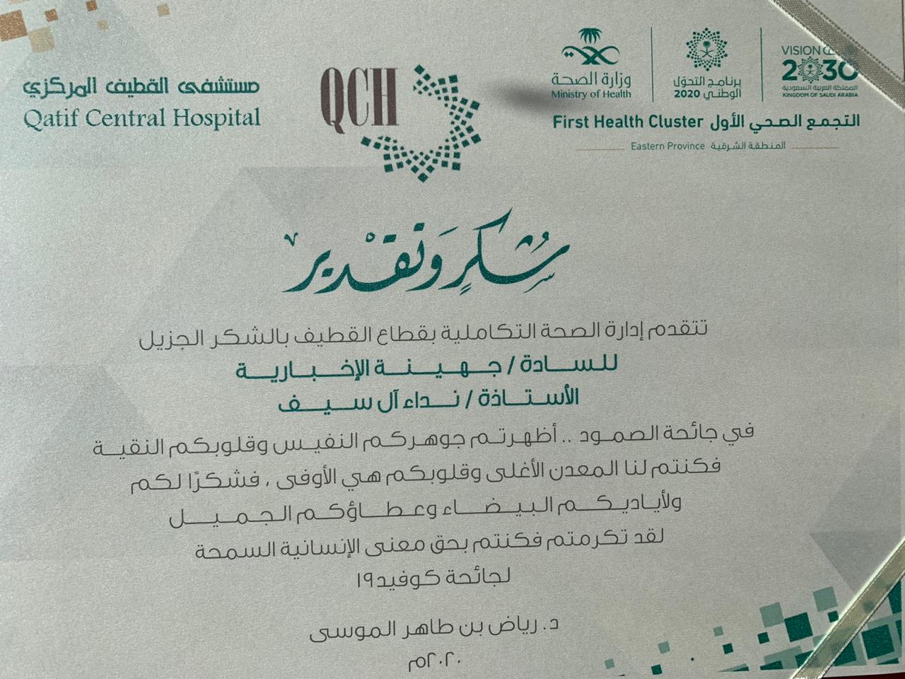 «صحة القطيف» تكرم إعلام الجائحة.. و ”جهينة الإخبارية“