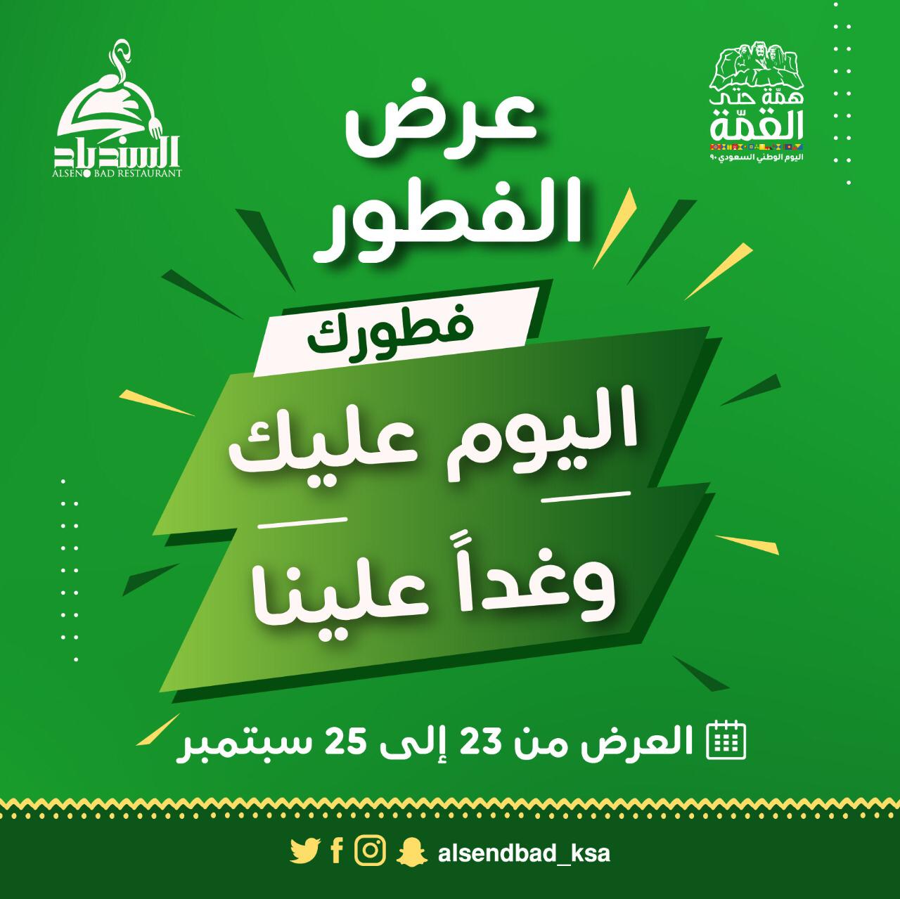 عرض اليوم الوطني.. فطور مجاني من «السندباد»