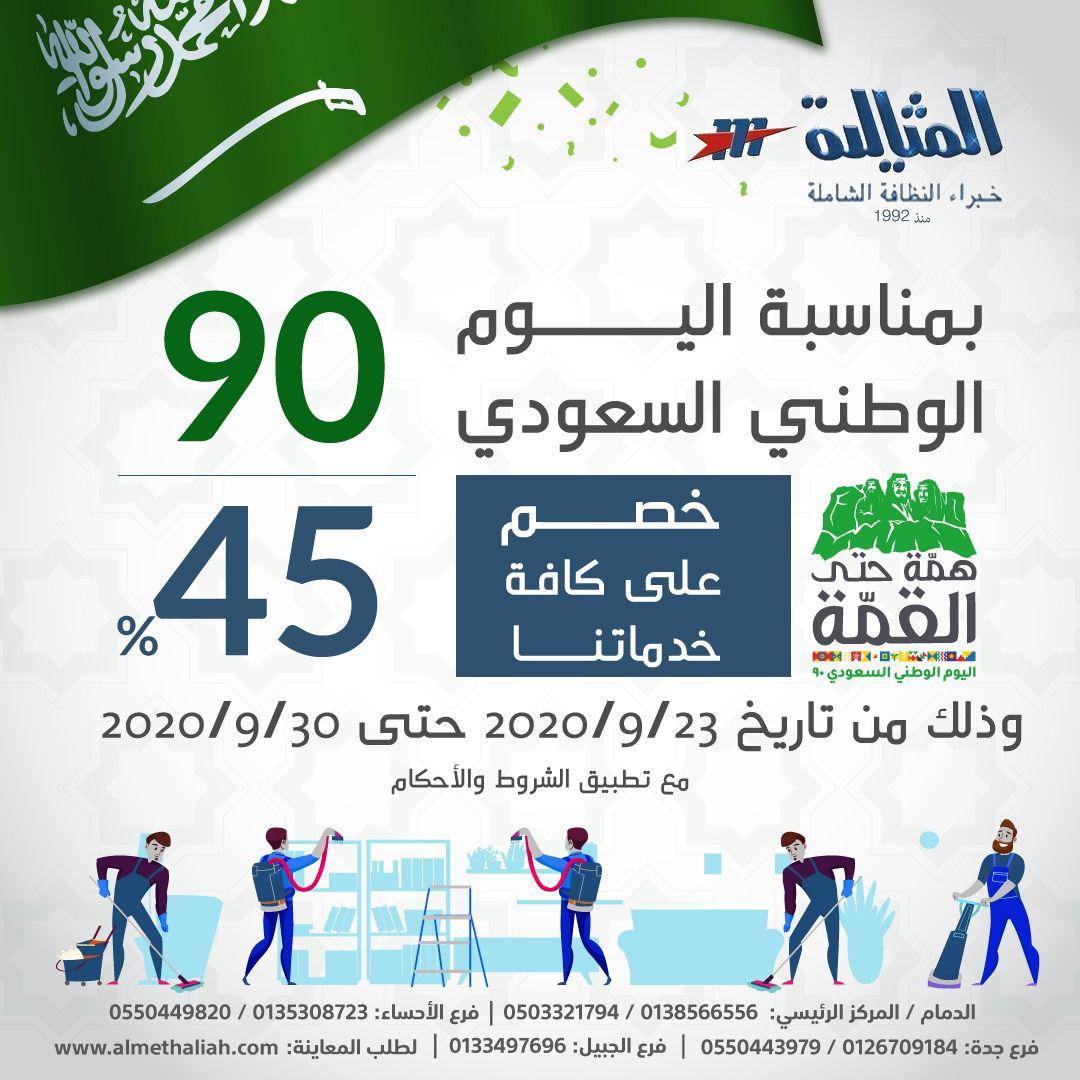 خصم 45 % على خدمات النظافة بمناسبة اليوم الوطني الـ 90