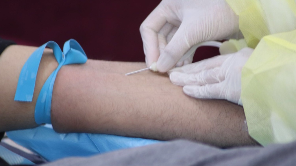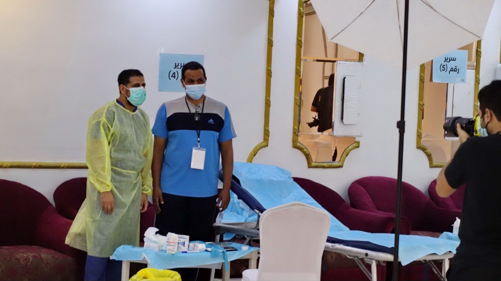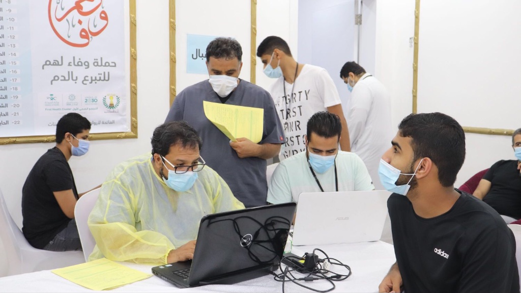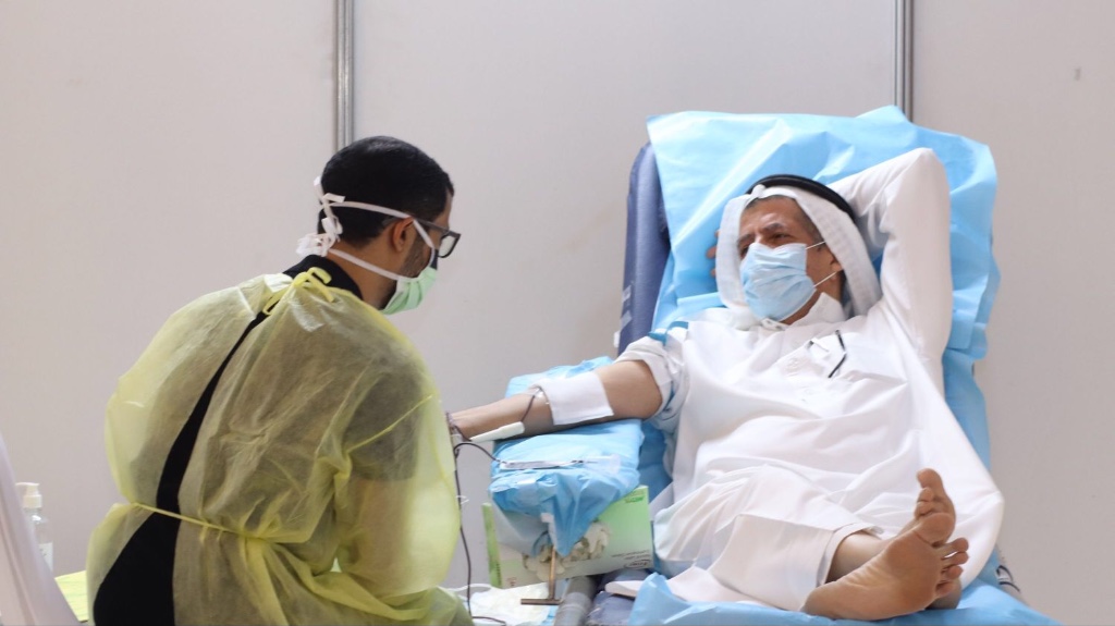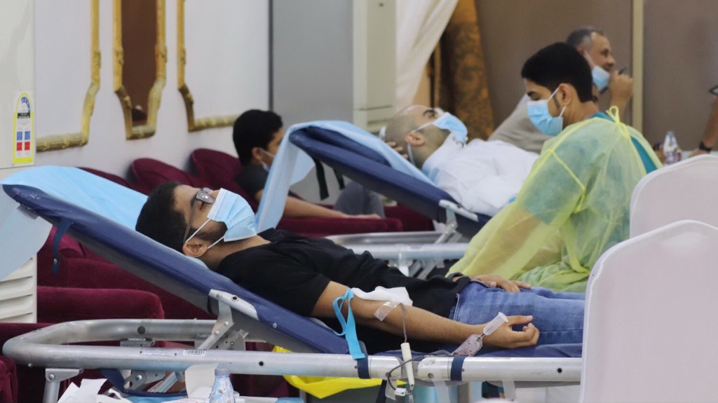 حيث تم فحص المتبرع عن طريق الأجهزة الكاشفة للحرارة، كما تم مراعاة المسافة الكافية بين المتبرعين، إلى جانب العديد من الإجراءات والشروط الوقائية.