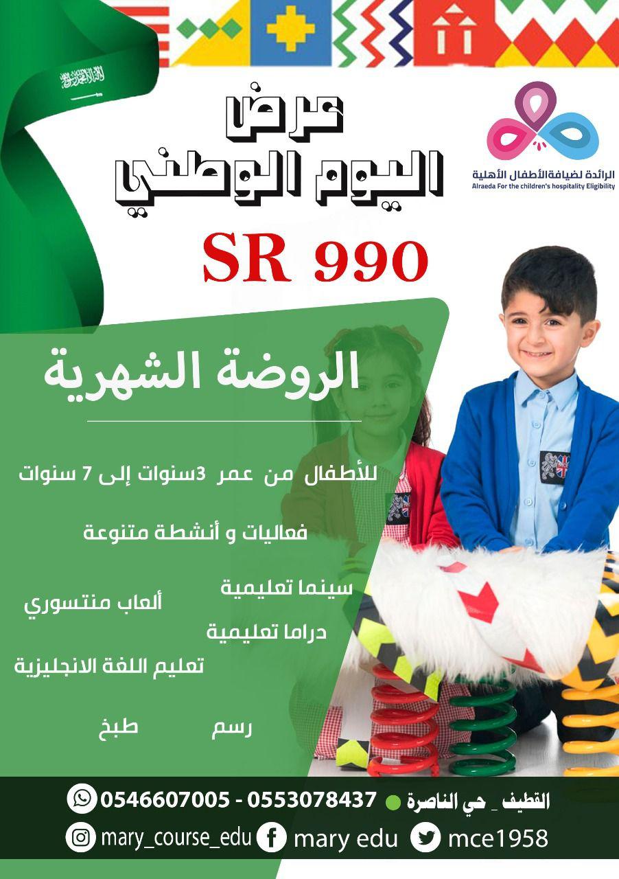 عروض روضة «ماري كورس» لليوم الوطني.. تبدأ من 990 ريالاً.