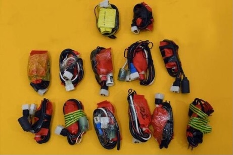 4 مجموعة كبيرة من المكثفات ومحولات كهربائية ومقاومات إليكترونية تستخدم في التشريك وتصنيع المتفجرات.