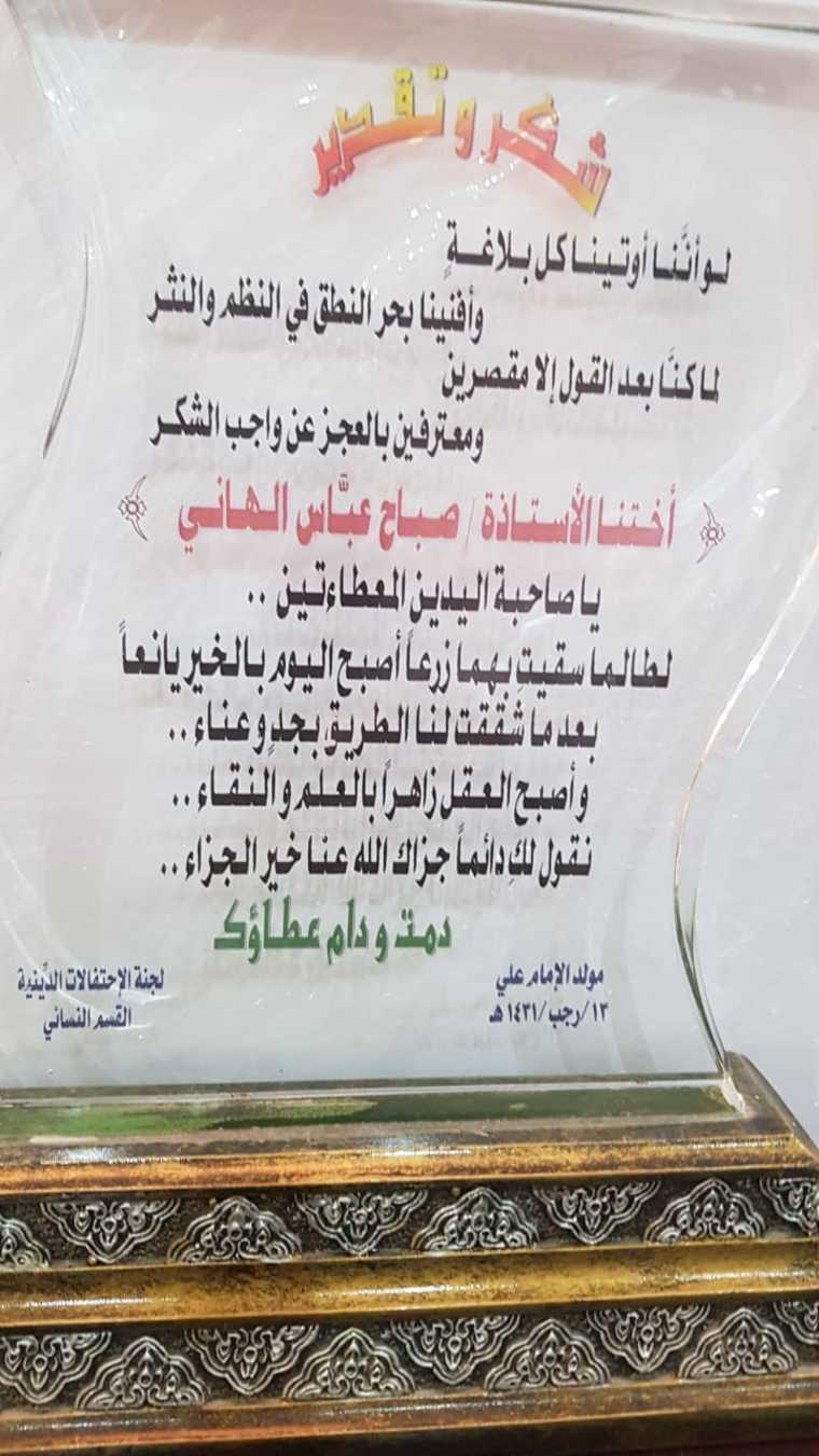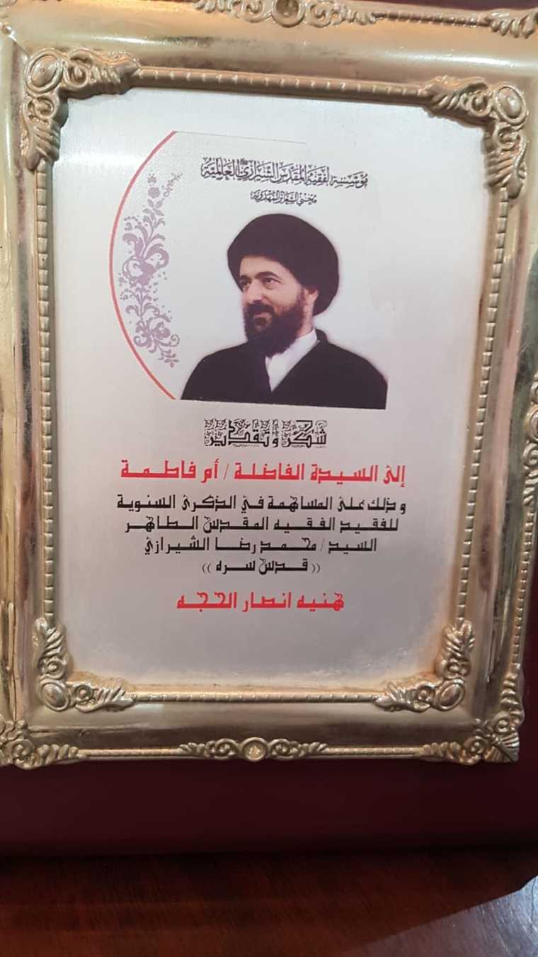 32 - تم تكريمها من قبل لجنة الاحتفالات النسائية الدينية في الاحتفال الجماهيري في ذكرى ولادة أمير المؤمنين علي