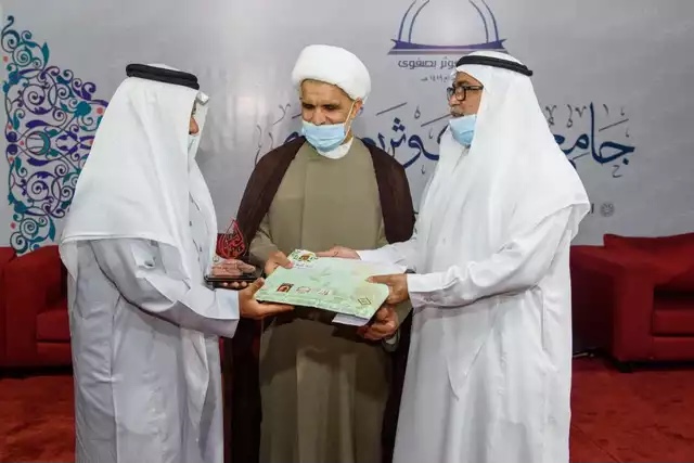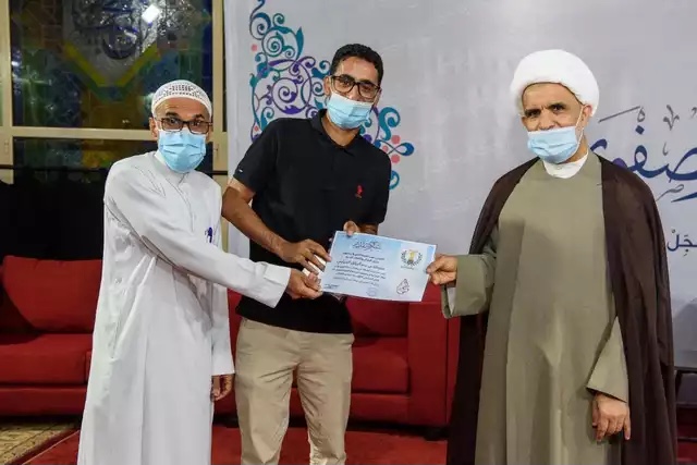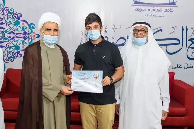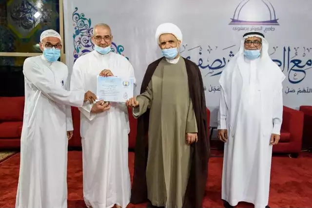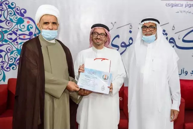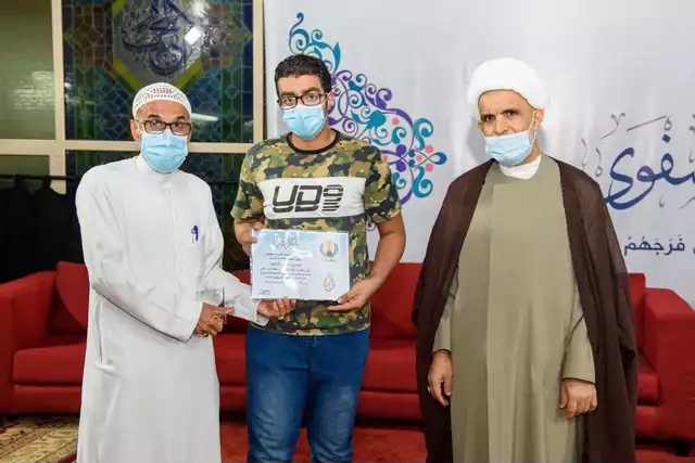 بعدها تم تكريم الداعمين والمنظمين من قبل الشيخ حسن الخويلدي وعلي العالي رئيس جمعية الصفا الخيرية.