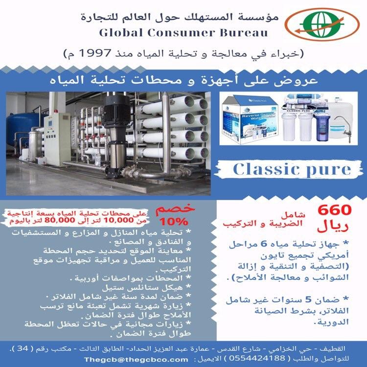 • عروض على أجهزة ومحطات تحلية المياه Classic pure