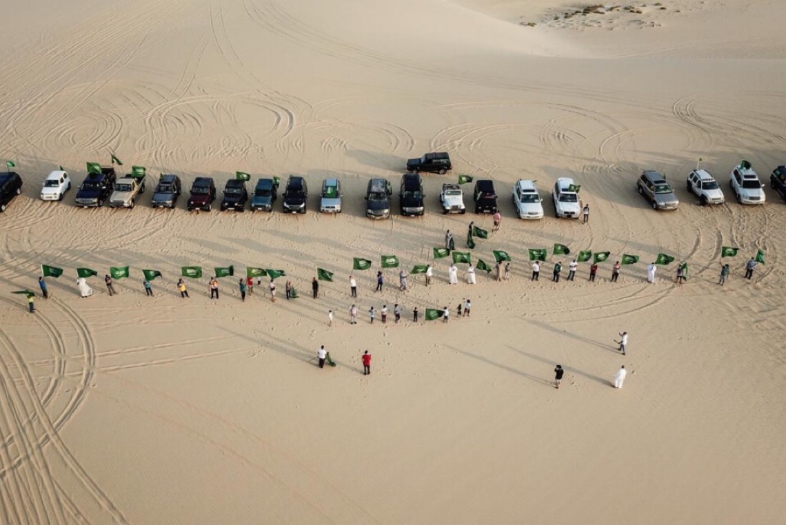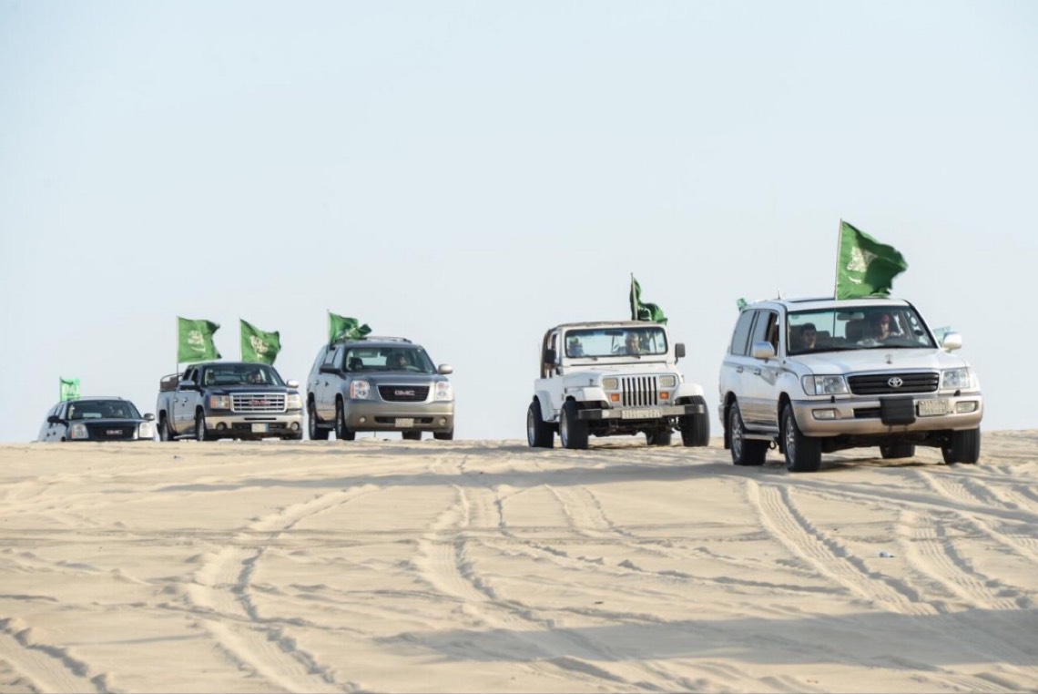 وقال رئيس الفريق ”خالد الفرج“ إن الفريق ينظم رحلات كل يوم جمعة، طوال العام، وتم تخصيص هذا الأسبوع لمسيرة وطنية بمشاركة 50 مواطنًا من مختلف الفئات العمرية.