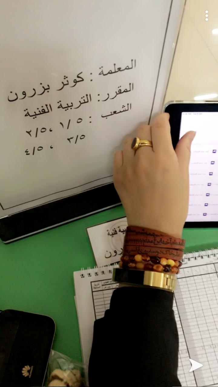 وأشارت الى أنه كل معلمة قامت بإحضار سجل متابعة الدرجات ومتابعة الغياب، كذلك قامت المعلمات بمناقشة وليات الأمر وذلك من خلال التواجد في المكان المخصص لكل معلمة وعدم الوقوف.