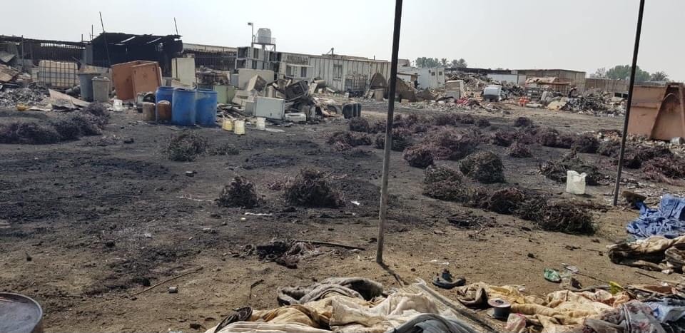 ورصد عدد من المواطنين حرق عمالة وافدة النفايات الصناعية بطريقة بدائية ومضرة بالبيئة، حيث تقوم بحرق الكيابل لاستخلاص المعادن منها بطريقة بدائية مخالفة للاشتراطات البيئية.