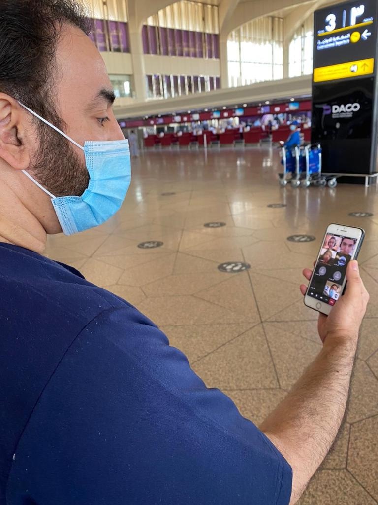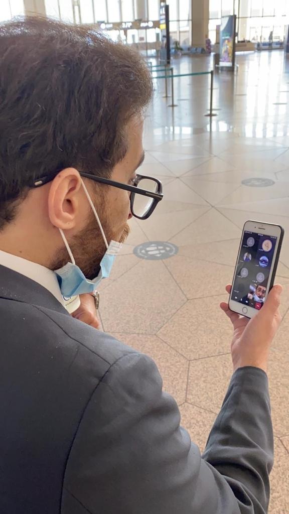 وطبق المعلم محادثات مختلفة متعلقة بإجراءات السفر والسلامة في ظل جائحة كورونا.