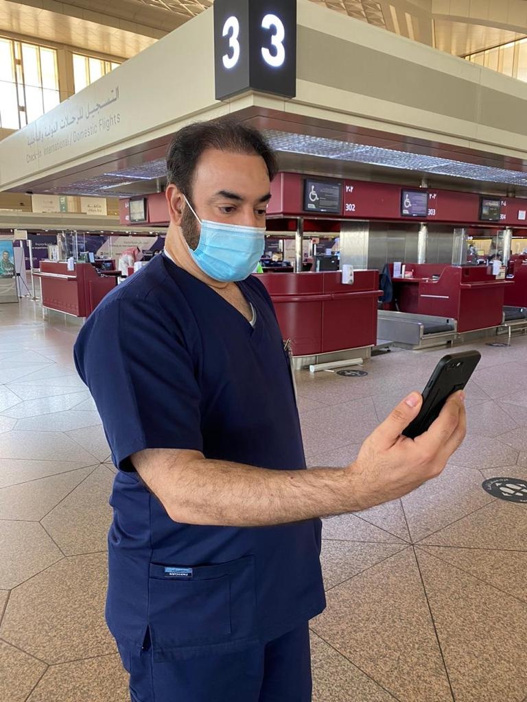 وشارك أحد أطباء المطار بتعريف الطلاب بأهمية المحافظة على الحالة الصحية للمسافر، والالتزام بالاحترازات الوقائية حفاظًا على سلامتهم عند الرغبة بالسفر.