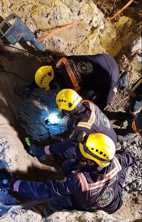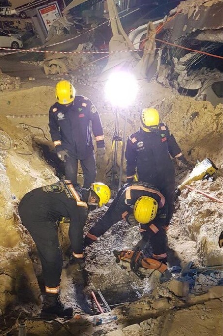 وعبر حساب «الدفاع المدني» بموقع التواصل الاجتماعي «تويتر»، نُشرت صور لفرق البحث والإنقاذ بمدني الخبر أثناء انتشال جثة مقيم بنجلاديشي من تحت انقاض مواقف مجمع السعيد التجاري.