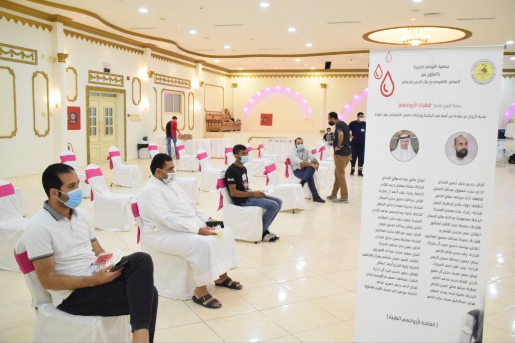 واقامت جمعية الأوجام الخيرية وبالتعاون مع المختبر الإقليمي وبنك الدم بالدمام القيام بحملة التبرع بالدم بعنوان ”قطرات لأرواحهم“.