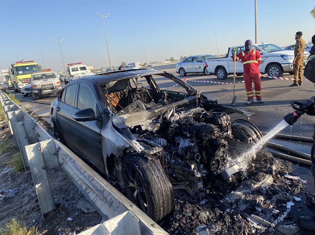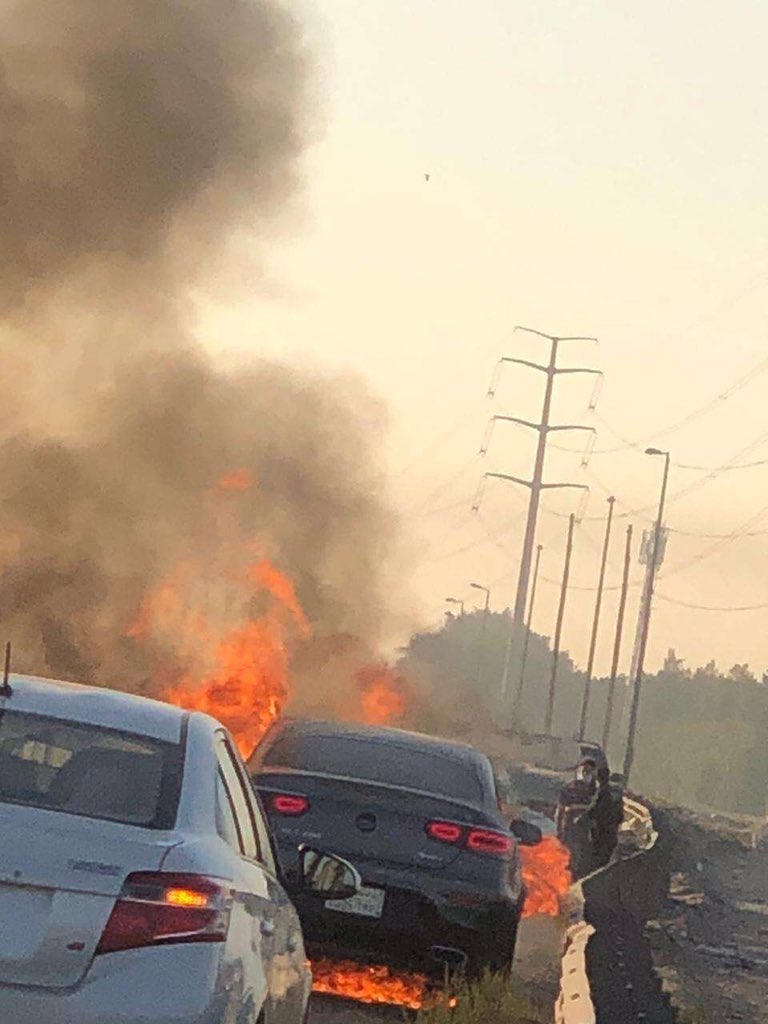 وتابعت: ”بعد مشي أقل من 20 كم على «هايواي» الدمام - الجبيل الطريق السريع السيارة اشتعلت السيارة في منتصف الهايواي، تيمنت بسرعة حتى أقدر أوقف بأسرع فرصة وكانت معاي صاحباتي في السيارة.. حرفياً قفزنا من السيارة عشان نقدر ننجي بأعمارنا“.