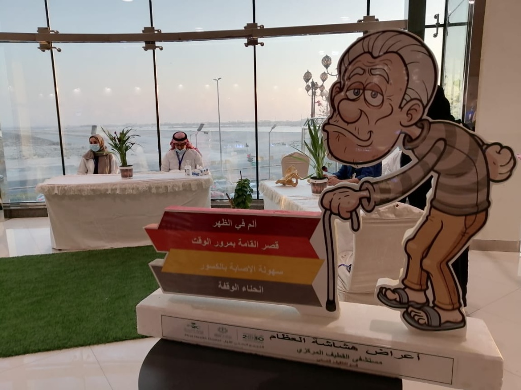 واقام قسم العظام مع قسم التثقيف الصحي بمستشفى القطيف المركزي بالتعاون مع لجنة التنمية الإجتماعية الأهلية بالقطيف فعالية ”هشاشة العظام“في ستي مول القطيف.