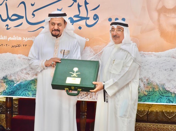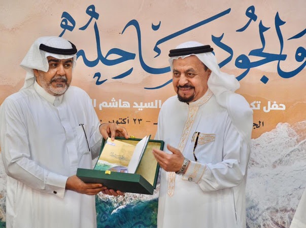 وكشف الستار عن الإصدار الخاص الذي أعده الملتقى بهذه المناسبة، حيث تم تقديم كتاب ”.. والجود ساحله“ الذي حوى شيئا من سيرة السيد هاشم الشخص، ومختارات من إبداعه الشعري، وإبداعات الشعراء فيه.