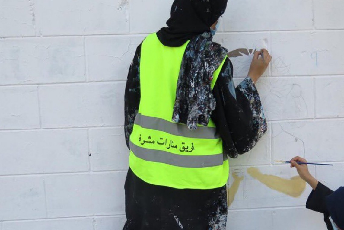 شملت الأعمال رسم الجداريات، ودهان المظلات وكراسي الجلوس، وممرات المشاة وأسوار الحديقة.