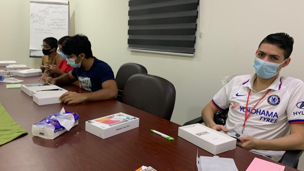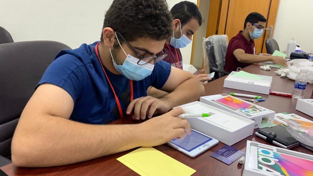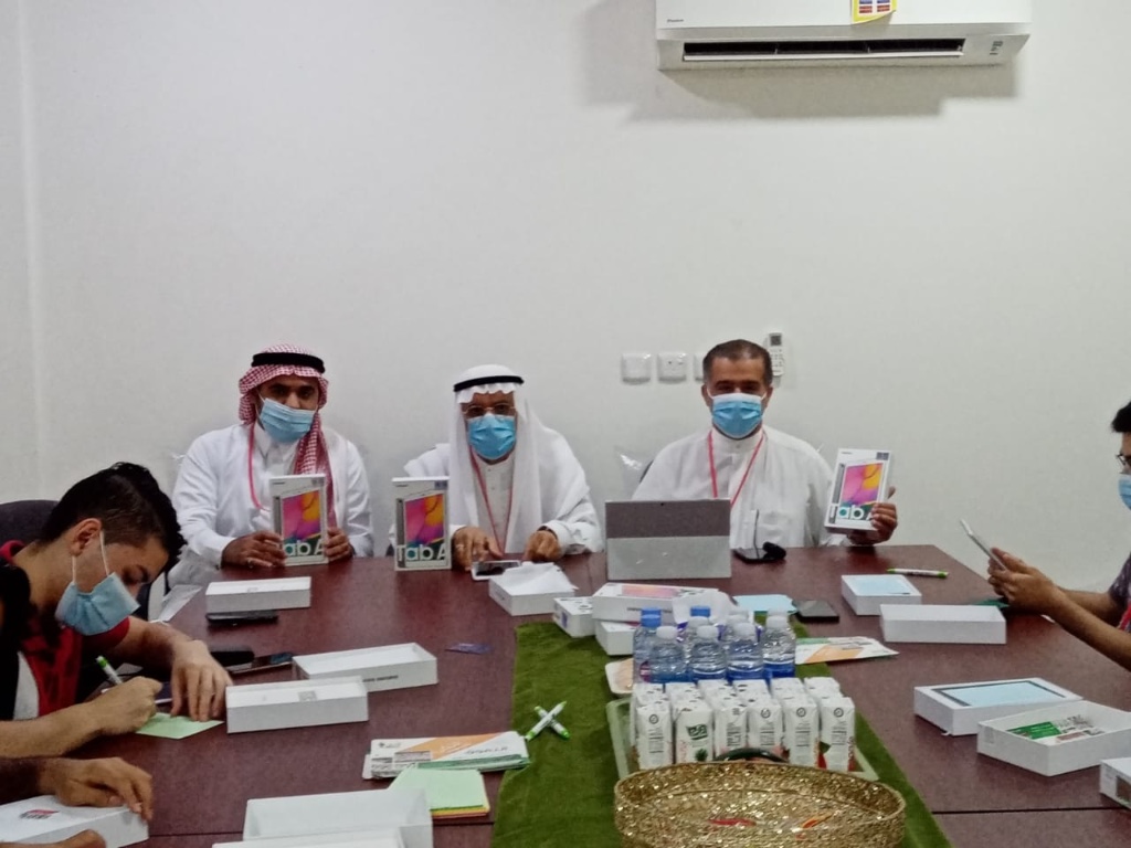 كما تم تشكيل فريق من طلاب ثانوية مدرسة دار العلوم ومدرسة صفوى الثانوية لتعريف الأجهزة بالبرامج والتطبيقات اللازمة للطالب.