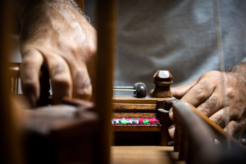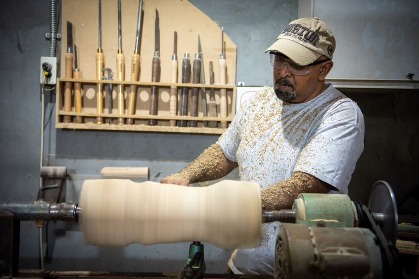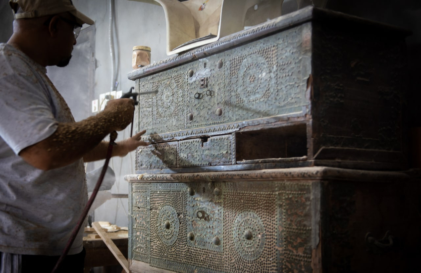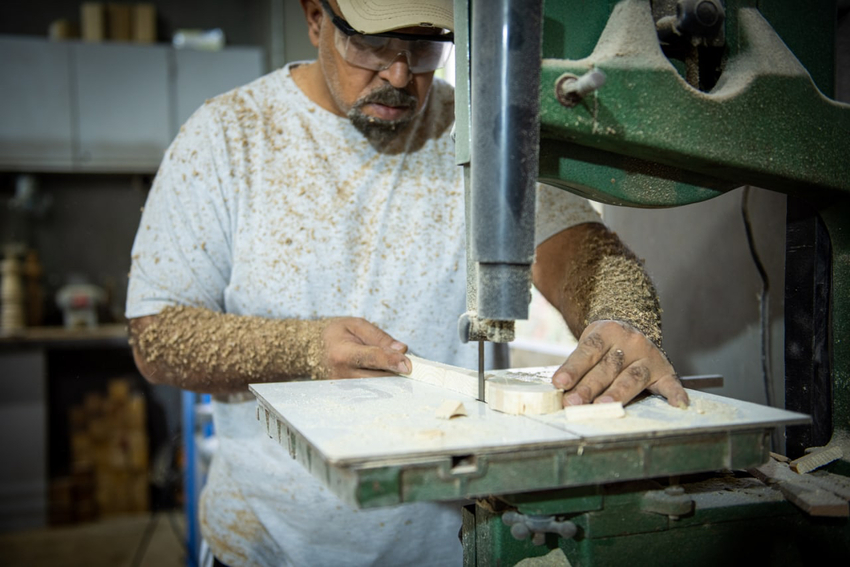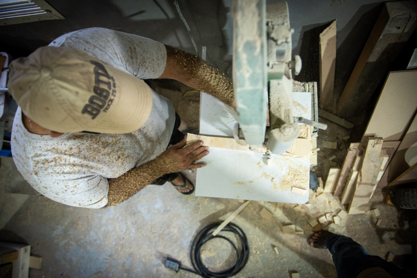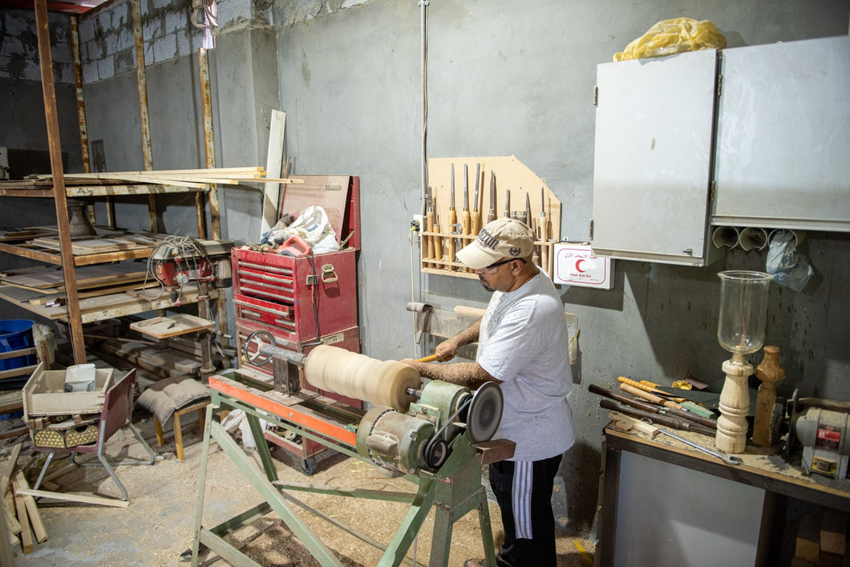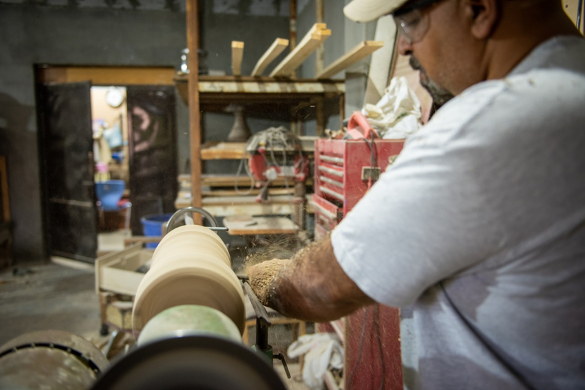 لأكثر من ربع قرن وماجد باقر السادة يزاول حرفة النجارة بينها صناعة الاثاث والمنحوتات الخشبية كالسفن والخيول والصواني والصناديق الخشبية.