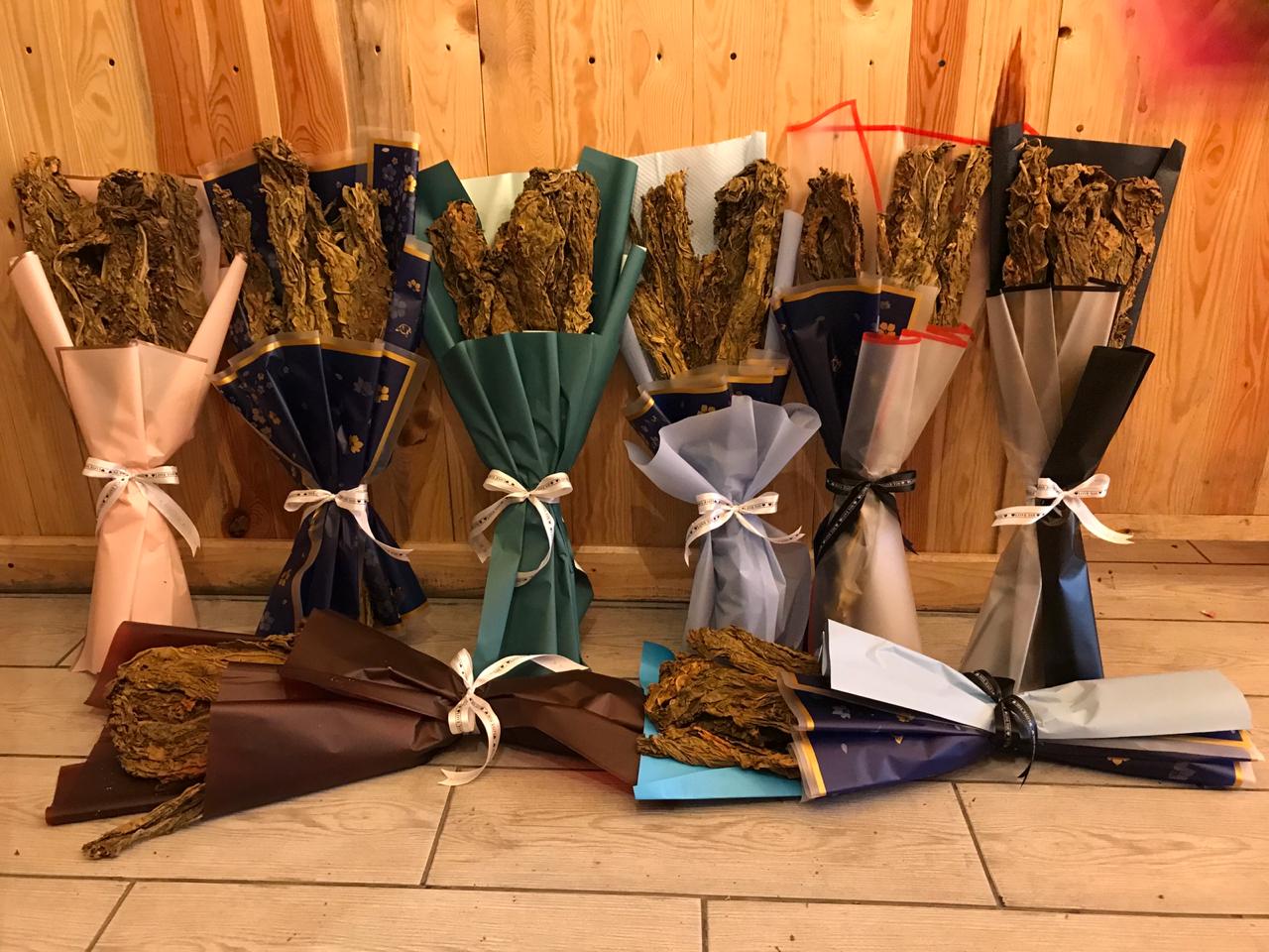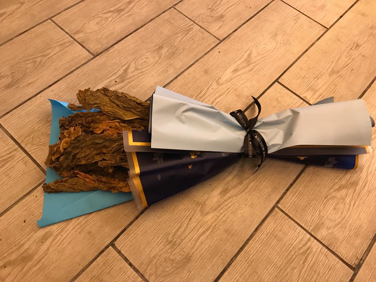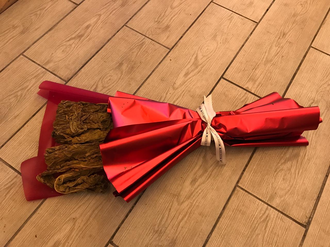 عوضا عن الزهور الطبيعية أهدى بائع تبغ من مدينة سنابس بمحافظة القطيف زملاءه ومعارفه باقات من التبغ الخام ”التتن“ غالي الثمن والشحيح في السوق المحلي.