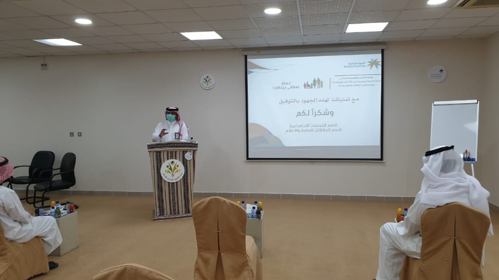 وقدم الورشة رئيس وحدة الإرشاد الأسري الباحث الإجتماعي محمد الميلاد، بمتابعة رئيس قسم الخدمات الاجتماعية محمد الجارودي.