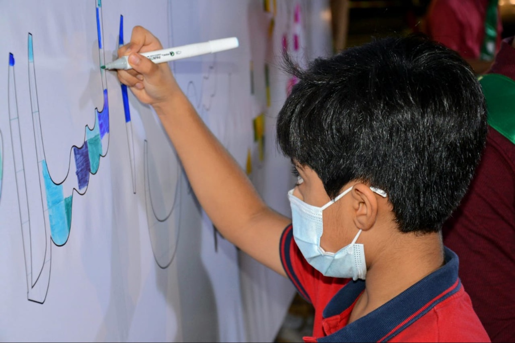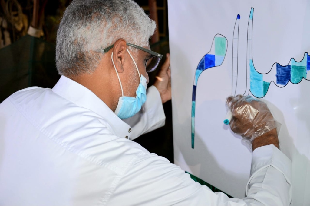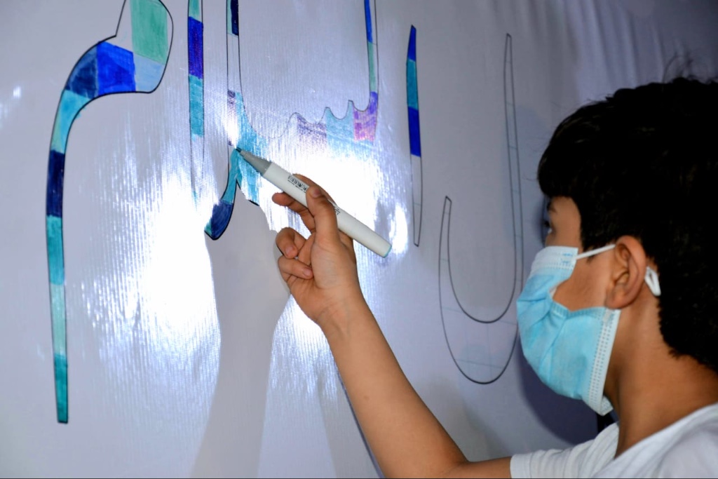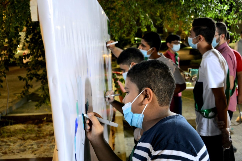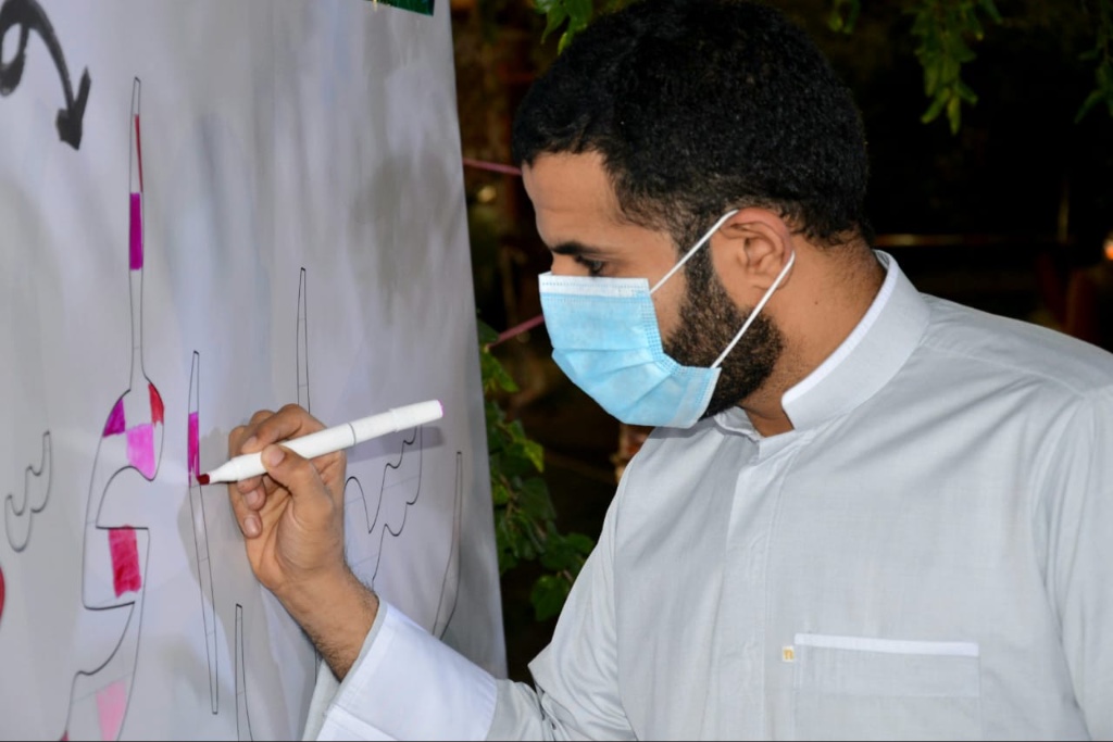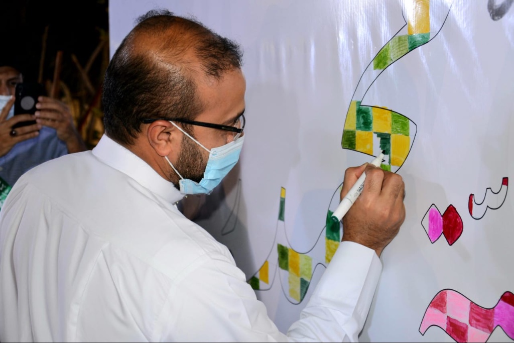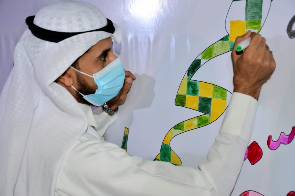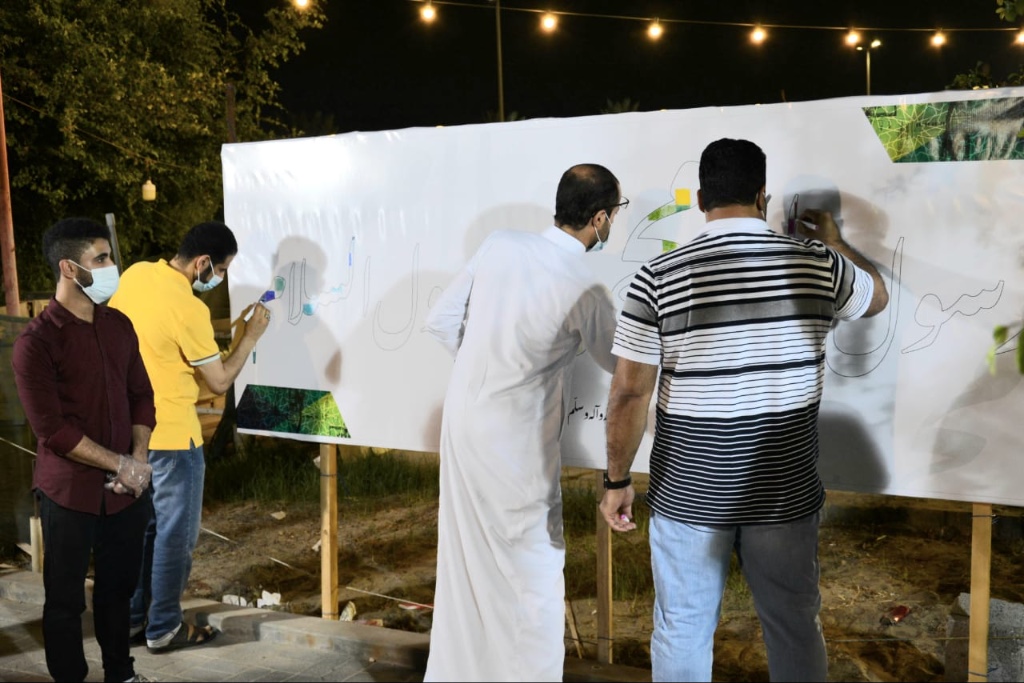 شارك عدد من مرتادي مسجد المسألة بمحافظة القطيف، في رسم لوحة فنية نصرة للنبي محمد ﷺ.