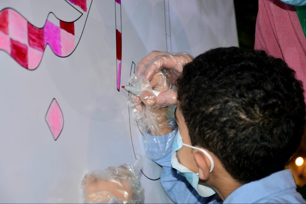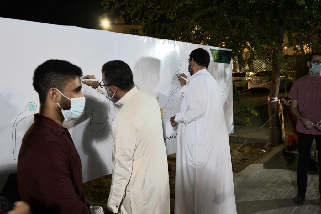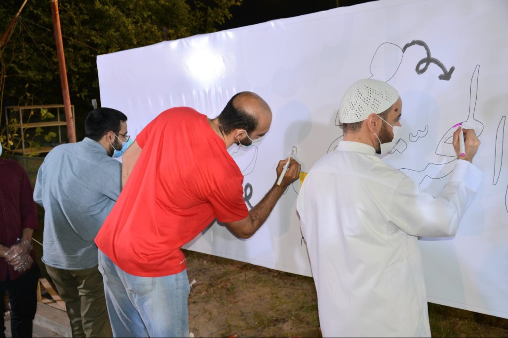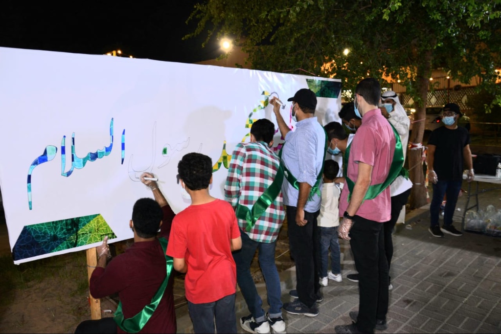 وشارك رجال القطيف وأبناؤها في رسم وتلوين اللوحة تحت مسمى ”رسول المحبة محمد رسول السلام“.