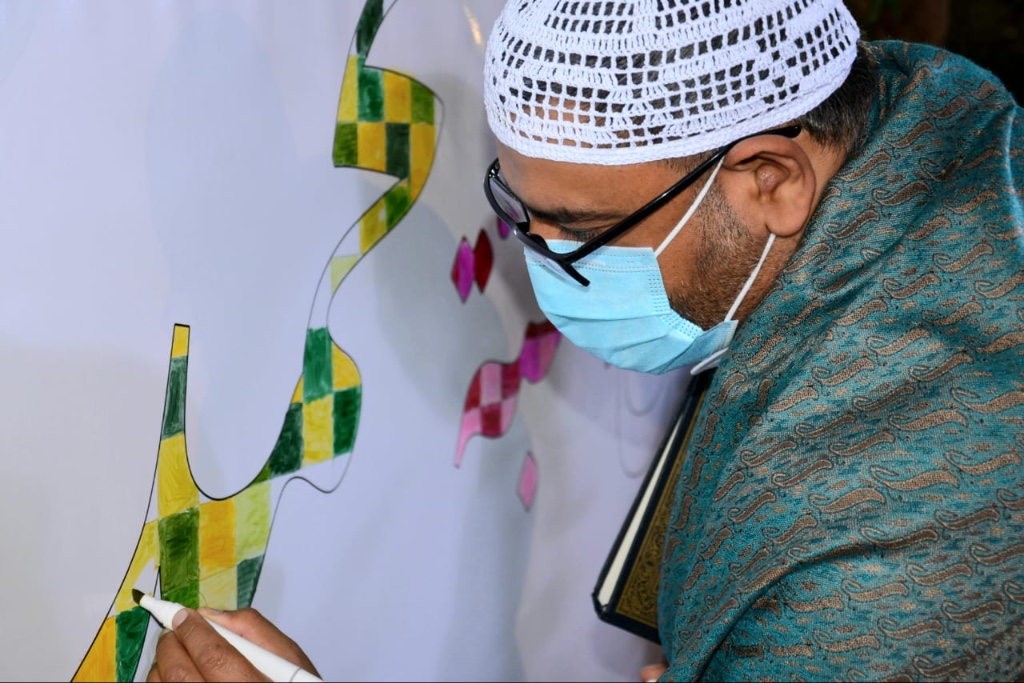 وذكر أن كلمة ”رسول“ جاءت بمزيج من كل تلك الألوان لكون الرسالة المحمدية شاملة لكل الكائنات.