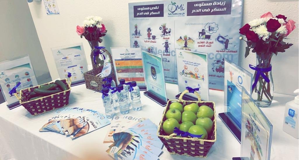 وتضمنت الفعاليات معرضا يهدف إلى توعية وتثقيف المجتمع بأضرار مرض السكري ومخاطره على الفرد ومسبباته ومضاعفاته وطرق الوقاية منه.