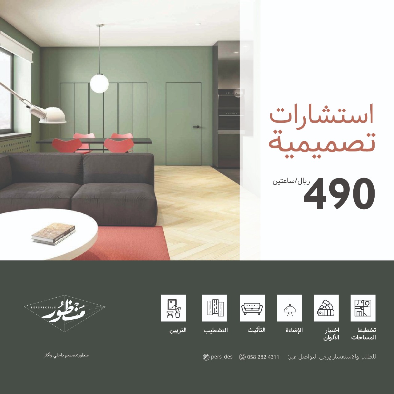 يقدم لكم خدمة الاستشارات عن بعد «أون لاين» في التصميم الداخلي فقط ب 490 ريال لمدة ساعتين.
