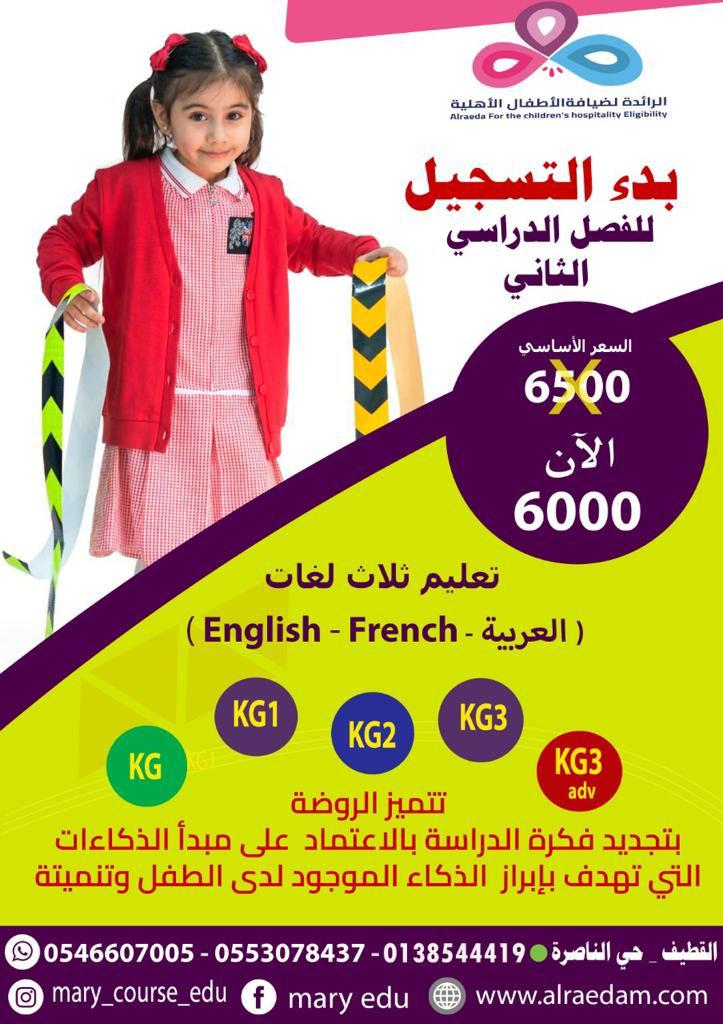 بدء التسجيل بروضة ماري كورس «الرائدة لضيافة الأطفال الأهلية» ثلاثية اللغات البريطانية القطيف حي الناصرة