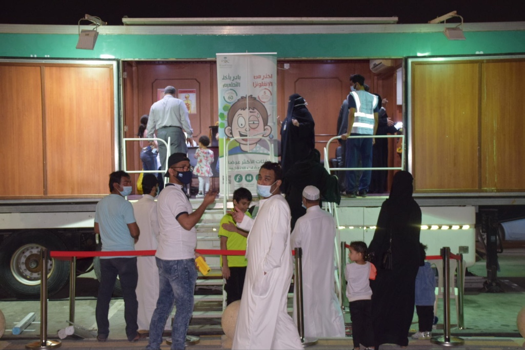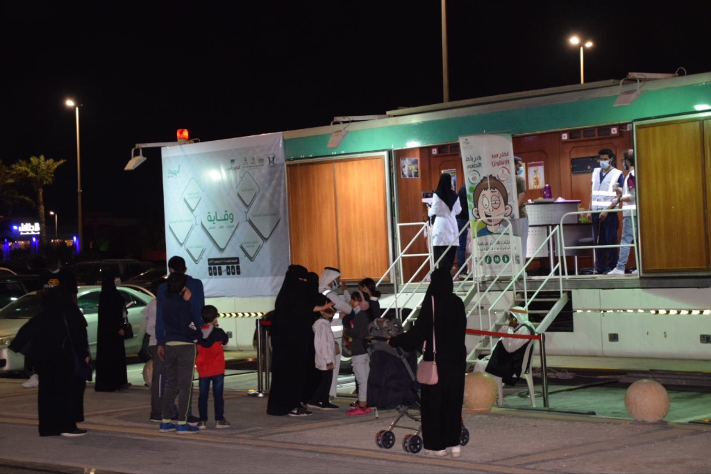 عيادة متنقلة لفحص الايدز والتطعيم ضد الأنفلونزا في اليوم العالمي للتطوع بالخبر