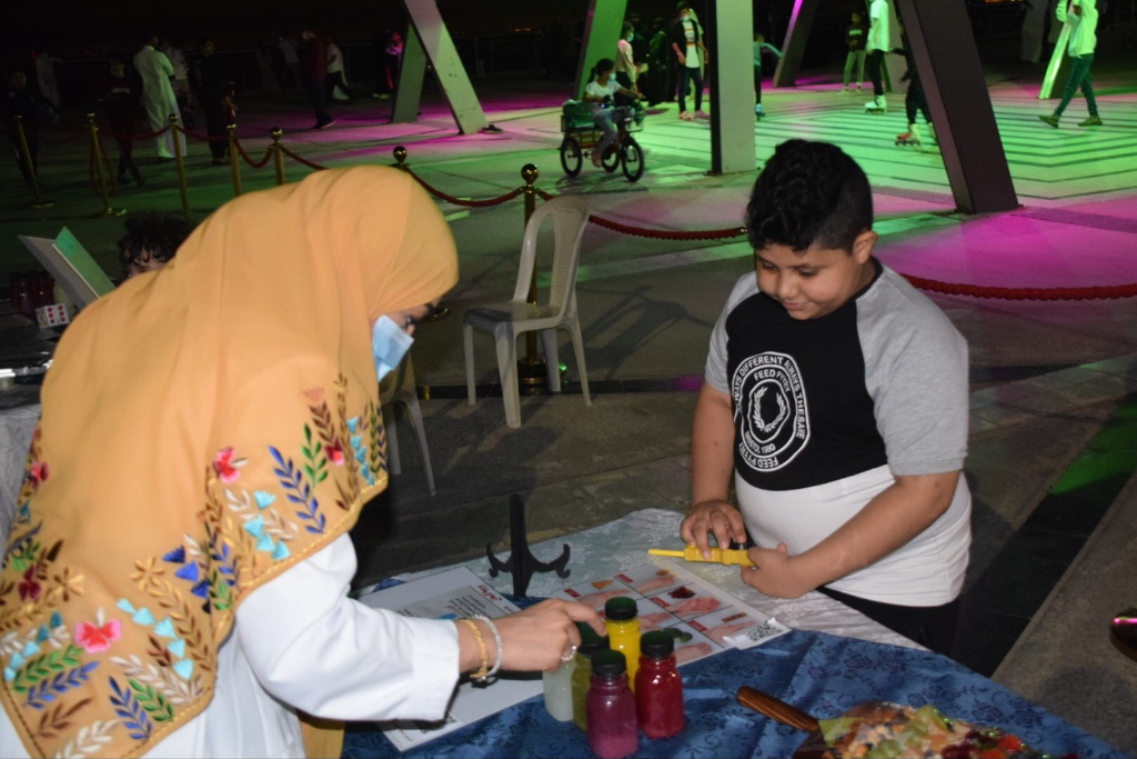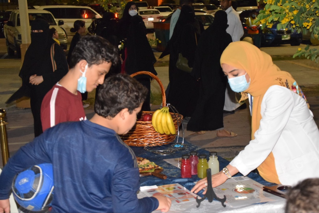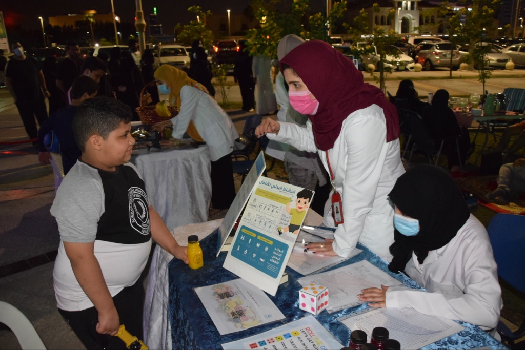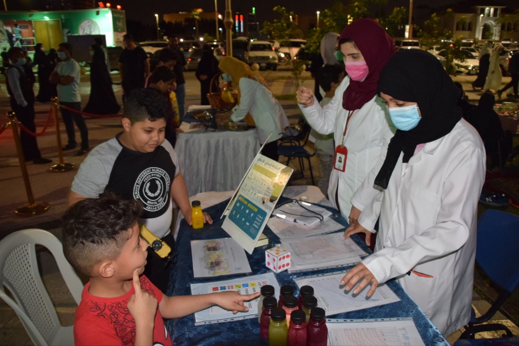 ويهدف ركن الرشاقة إلى توعية المجتمع بأهمية النظام الغذائي الصحي وممارسة الرياضة وقياس الطول والوزن وكتلة الجسم لتشخيص السمنة.