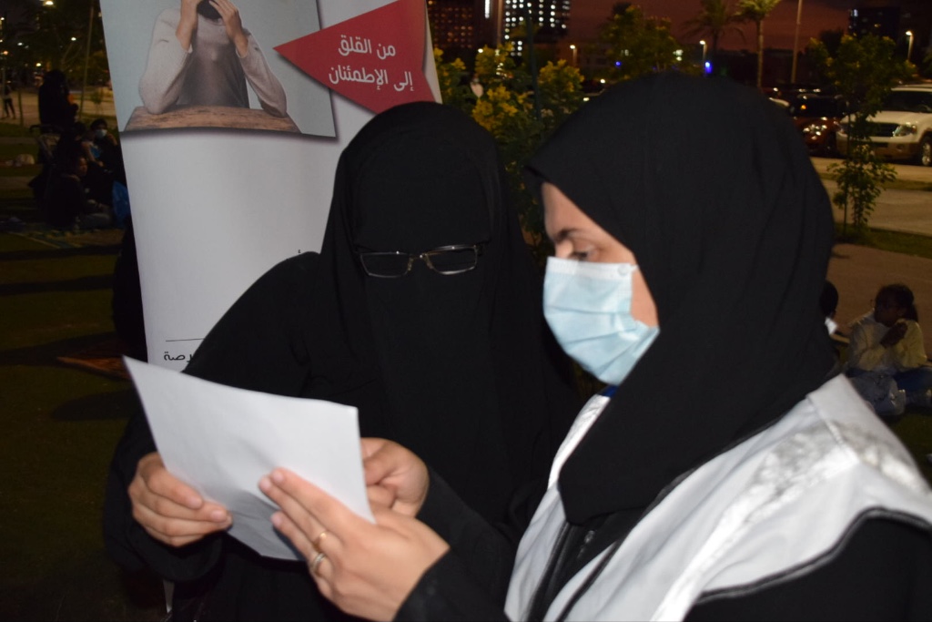 ويهدف ركن تعزيز الصحة النفسيه لتعزيز مهارات الحياة لدى أفراد المجتمع والكشف الأولي عن الصحة النفسية وتأثير مرض كورونا على المجتمع من خلال عمل الفحص المبكر لتشخيص مرض القلق والاكتئاب.