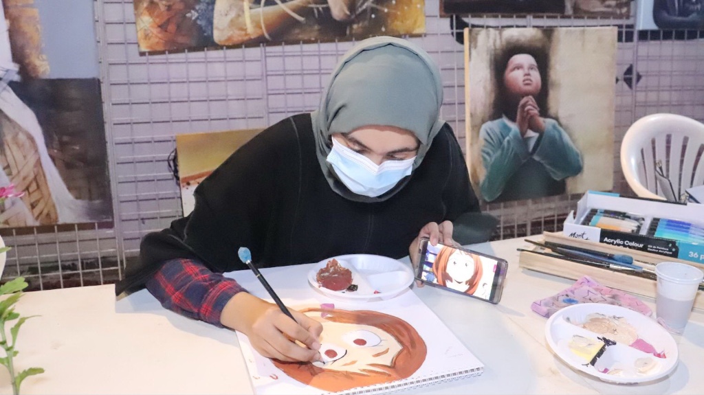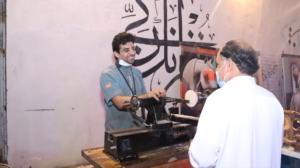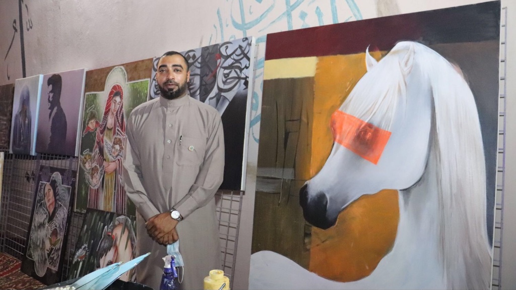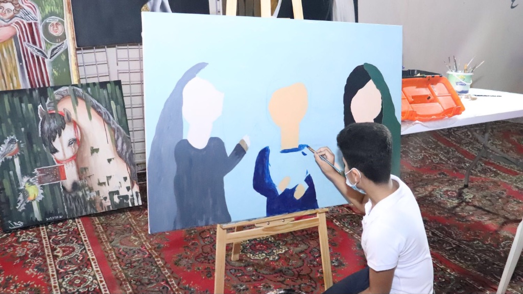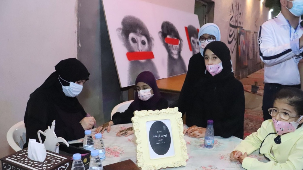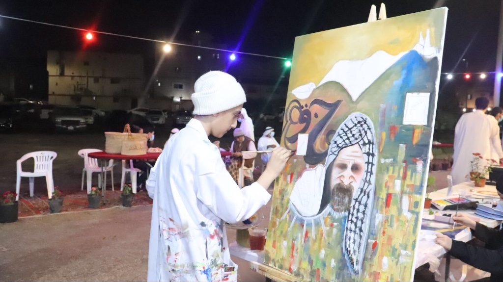 حيث شارك التشكيلي عبد العظيم الضامن بلوحة المحبة والسلام وهي لوحة كتب فيها عبارة ”التطوع عطاء وطن“، أما الركن الثاني للفنانة ليلى نصر الله حيث تنوع المعرض بلوحات فنية لمجموعة من الفنانين ورسم مباشر.