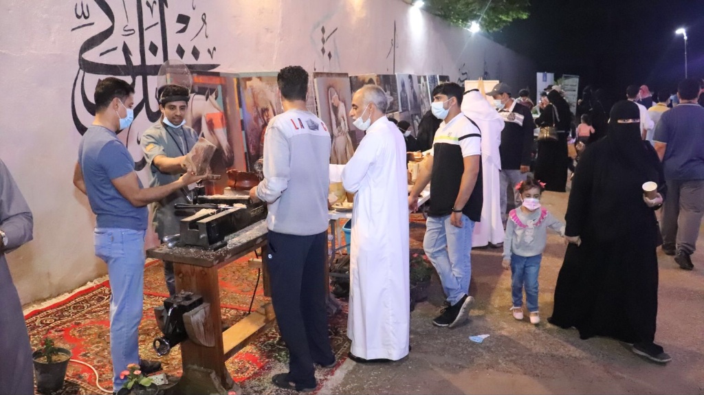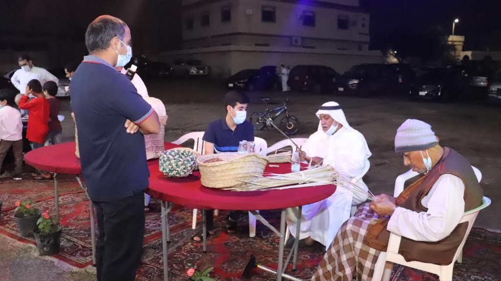 وأضاف أن الركن الثالث كان للفنان صادق السليمان بركن المخطوطات العربية ”خط كيتوس“ أما الركن التراثي الحرفي لـ أبو عبد الله المدن ورمضان الرمضان ومجموعة من التراثيين، وتنوع بركن الخوصيات والطين والفخار، وركن النحت ”ورشة لفنان السيد هاشم آل طويلب“.
