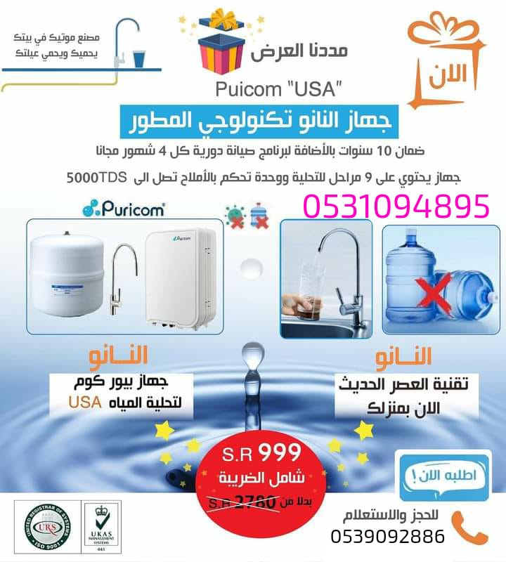 ويعتبر أقوى جهاز تحلية بالمملكة يتحمل أملاح عالية تصل إلى TDS 5000