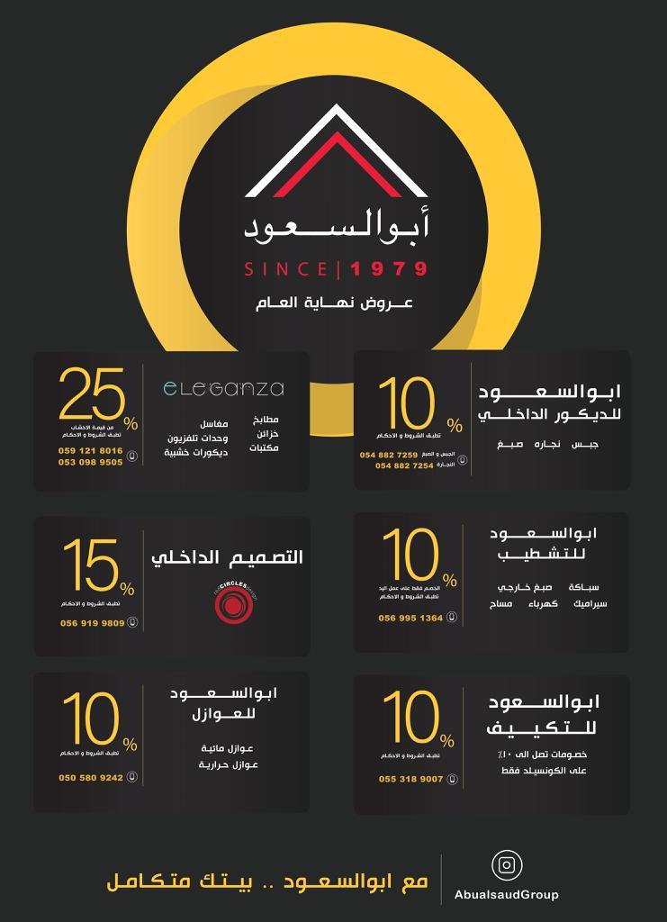 - خصومات 10 ٪ على قسم التكييف والعوازل والسباكة والتشطيب والنجارة والديكور والجبس