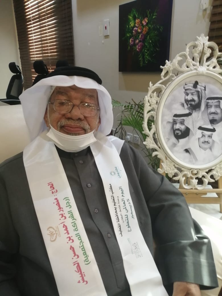 كرم مدير مكتب التعليم بمحافظة القطيف عبدالله القرني بمكتبه، «رجل الشراكة المجتمعية الحاج منصور آل كبيش». لتطوع لمدة 10 سنوات قي تنظيم حركة السير أمام إحدى المدارس، وذلك تزامنا مع اليوم السعودي العالمي للتطوع.