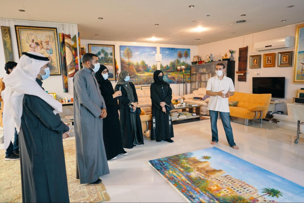 وقد انطلقت أولى رحلات هذا البرنامج يوم الثلاثاء متوجهة لمرسم الفنان التشكيلي منير الحجي، الذي أستقبل زواره بحفاوة أدخلهم منذ بداية الزيارة في عوالمه التي يعتز فيها بتراث المنطقة وزخارفها وأبوابها القديمة حيث علقها في واجهة المدخل ومن رحلته لإكتشاف ذاته الفنية أخذ زواره معه بين التجارب التي خاضها واضعًا لوحاته القديم منها والجديد أمامهم، ورغم المدة القصيرة فقد كانت رحلة ممتعة نسي معها الجميع الوقت مستغرقين في اللون واللوحات المختلفة