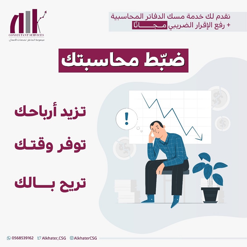 نقدم لك خدمة مسك الدفاتر المحاسبية ونرفع اقرارك الضريبي مجاناً👌🏻✨