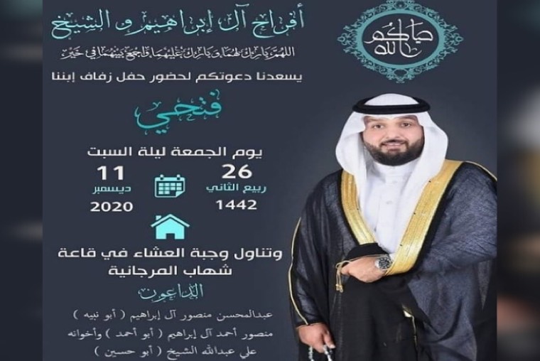 تحتفل عائلة آل ابراهيم والشيخ في العوامية مساء يوم الجمعة بحفل زفاف الشاب فتحي آل ابراهيم على كريمة الحاج علي الشيخ في قاعة شهاب المرجانية وسط فرحة الأهل والأصدقاء ومحبي العريسين.