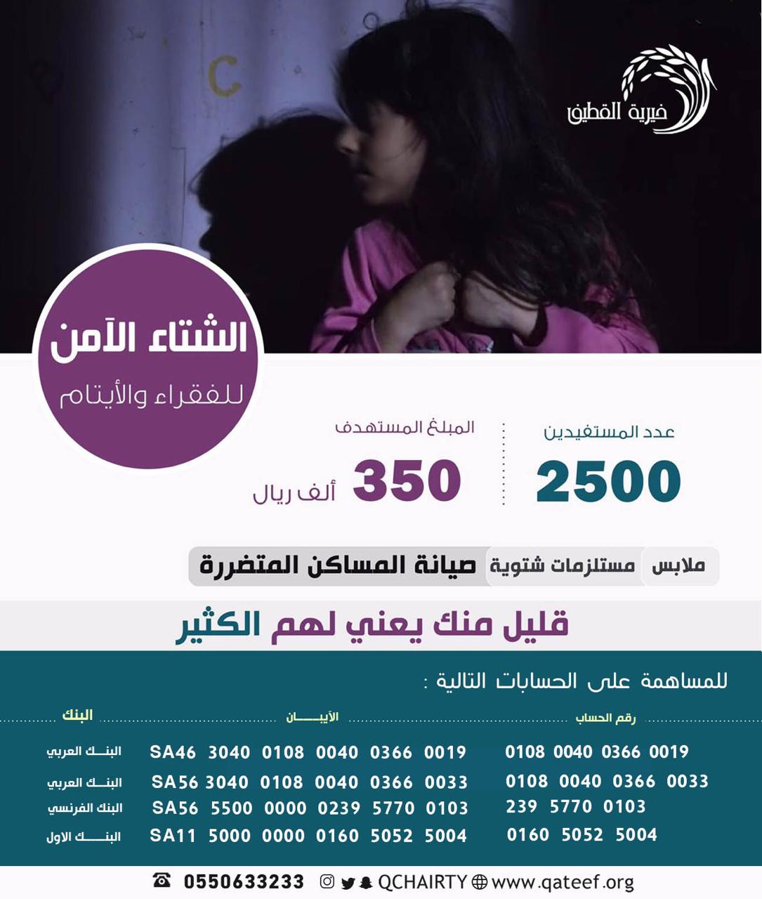 ”شتاء آمن“.. 350 ألف ريال لدعم 2500 مستفيد بـ ”خيرية القطيف“